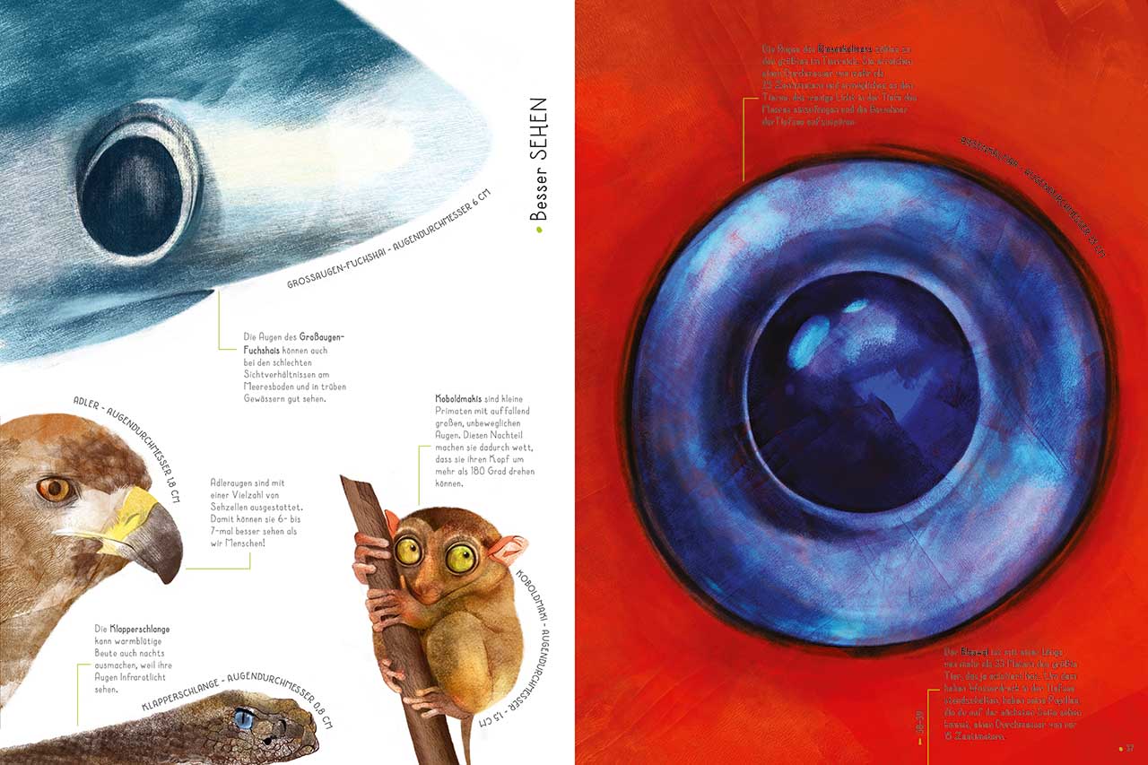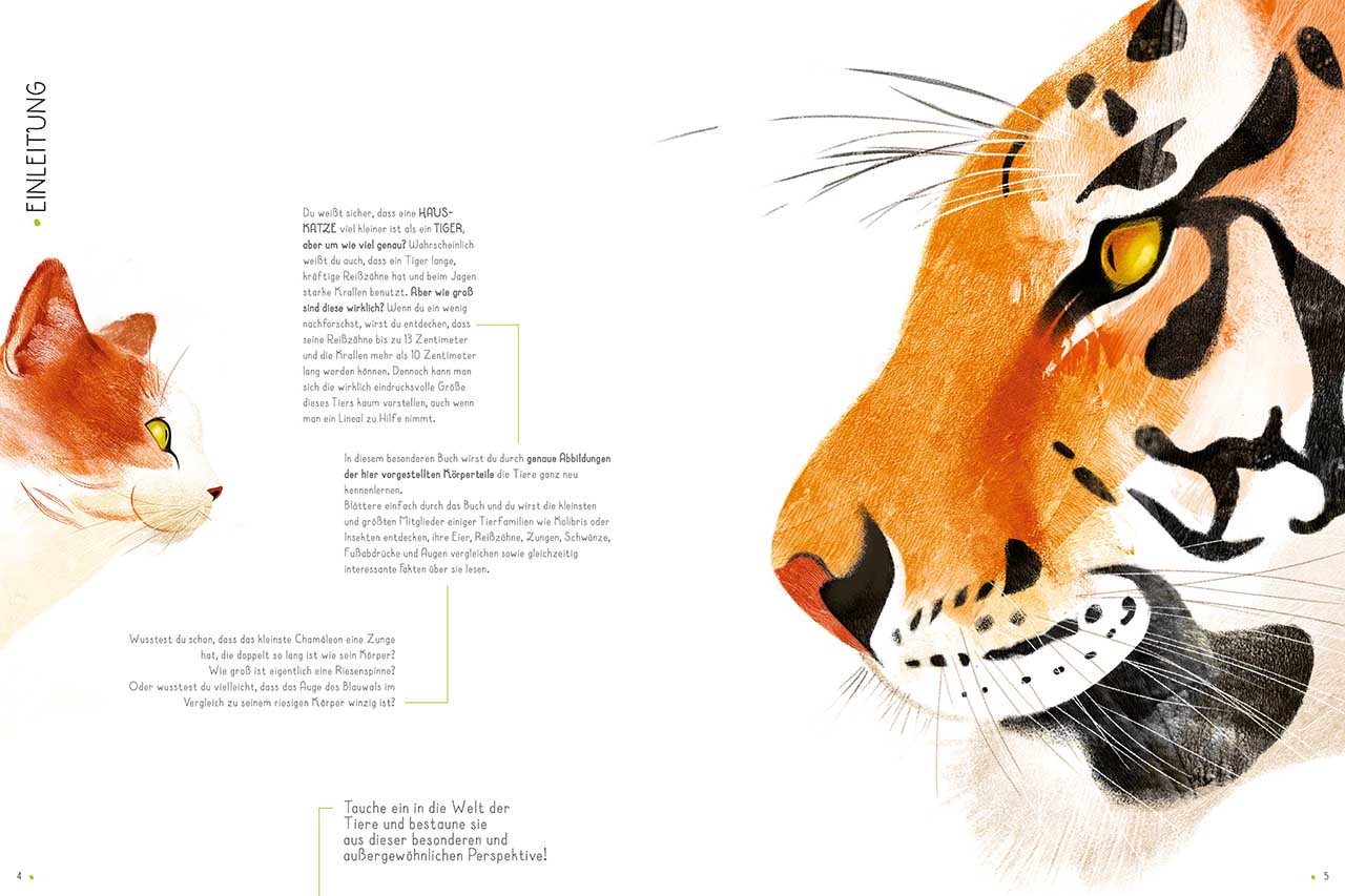 Die Tierwelt ist ein bestaunenswertes großes Ganzes. Wer einmal einen spannenden Ausschnitt im Detail betrachten will, der wird in diesem Bildersachbuch fündig. Ob Klauen, Stoßzähne oder Eier – hier bekommen Kinder hautnah ein Gefühl für tatsächliche Größen. Von rekordverdächtigen Schmetterlingen, Prachtexemplaren wie dem Auge des Koloss-Kalmars bis hin zum lebensgroßen Eichhörnchen.