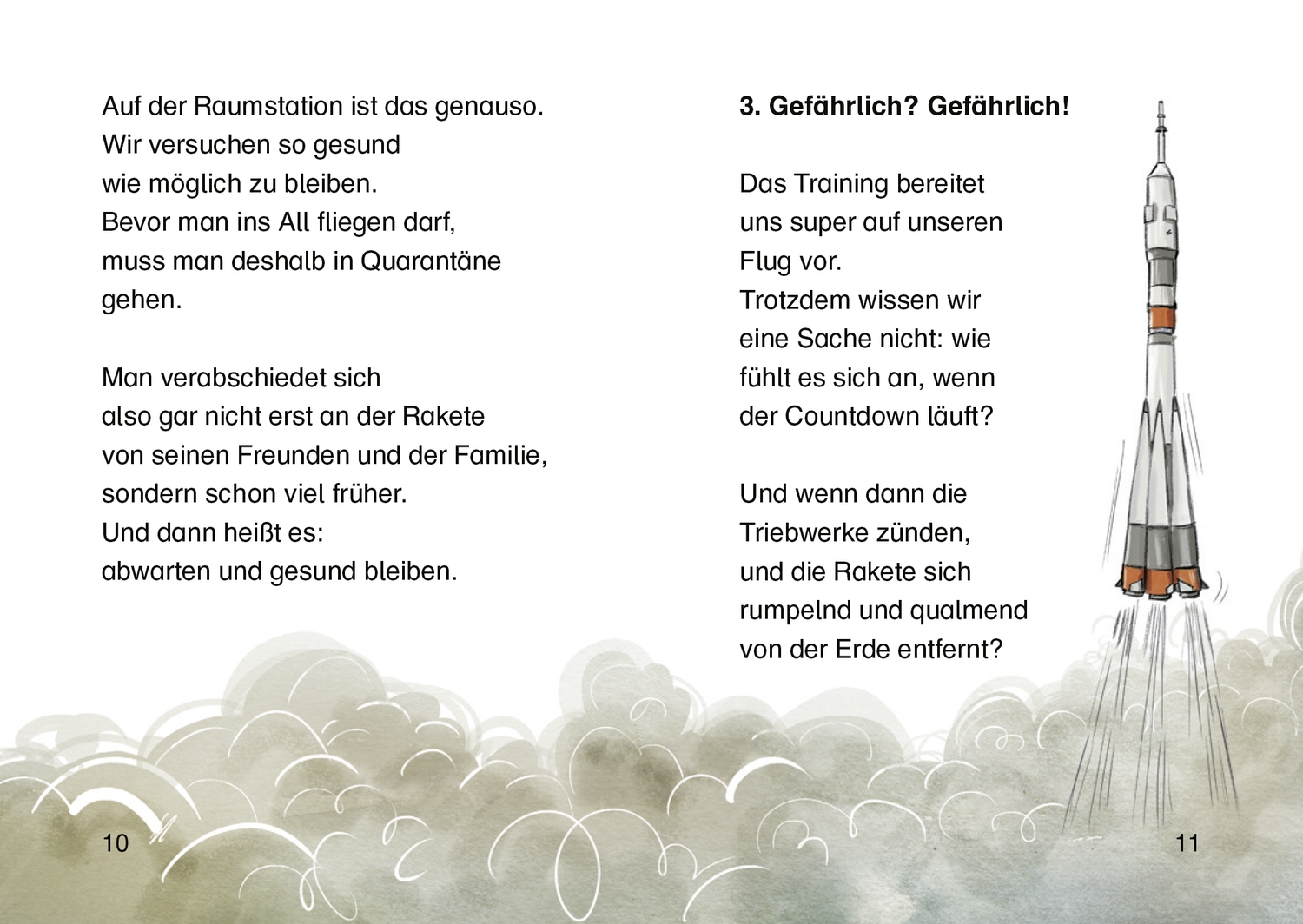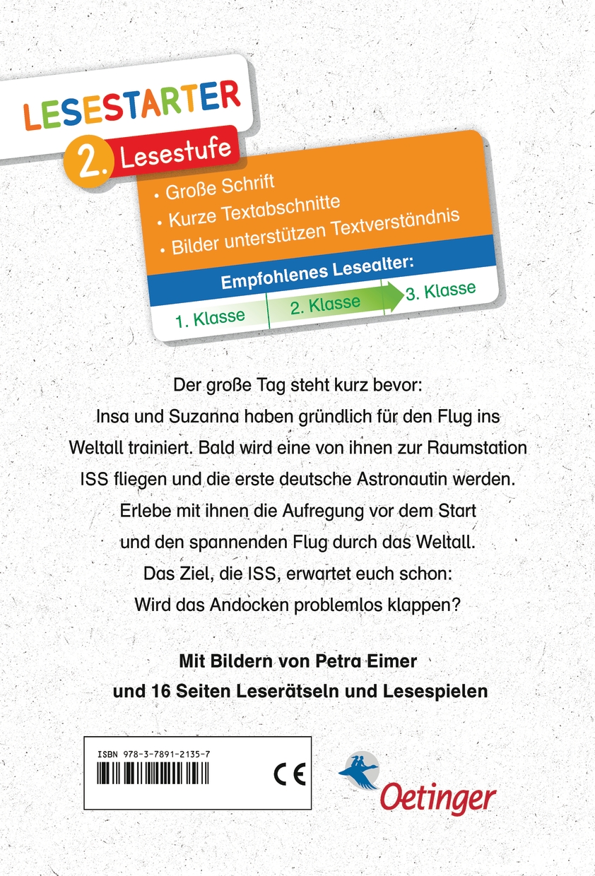 Der große Tag steht kurz bevor: Ihr faszinierendes Weltraumtraining haben die beiden ersten deutschen Astronautinnen in ihrem Buch „Unser Weg ins Weltall“ vorgestellt, nun brechen sie bald zur Raumstation ISS auf. Wie das funktioniert, erklären sie in diesem Erstleserbuch. Wie startet eine Rakete? Welche Gefahren kann es beim Flug geben? Auf kindgerechte Art und Weise werden hier Antworten auf spannende Fragen gegeben und spielerisch wird das Interesse an Naturwissenschaft und Technik geweckt.