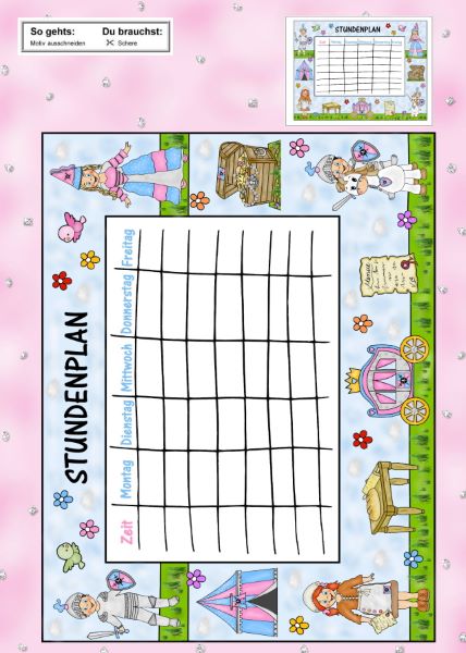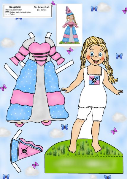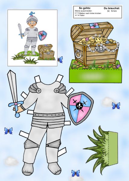 Hier werden die Kinder zu Ausschneide- und Bastelprofis. Mit Motiven, die ihnen gefallen: Prinzessin und Ritter als Anziehpuppen, Ritterburg, Kutsche, Krone, Helm, Schwert und Zelt. Zuerst wird gebastelt und dann können die Mädchen und Jungen mit der Ritterburg und ihren Bewohner*innen spielen. Also schnell Stifte, Schere und Klebstoff bereitlegen – und los gehts!