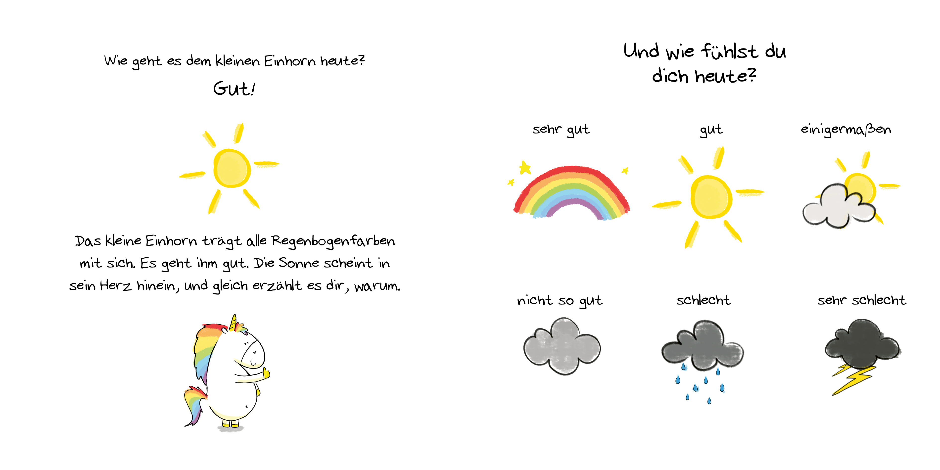 Das kleine Einhorn ist ein Einhorn wie viele andere auch, aber nur fast. Denn seine regenbogenbunte Mähne verfärbt sich, je nachdem, wie es sich fühlt! Die französische Bestseller-Reihe rund um ein junges Einhorn, das seine Gefühle entdeckt, wurde von einer Entspannungstrainerin für Kinder entwickelt.