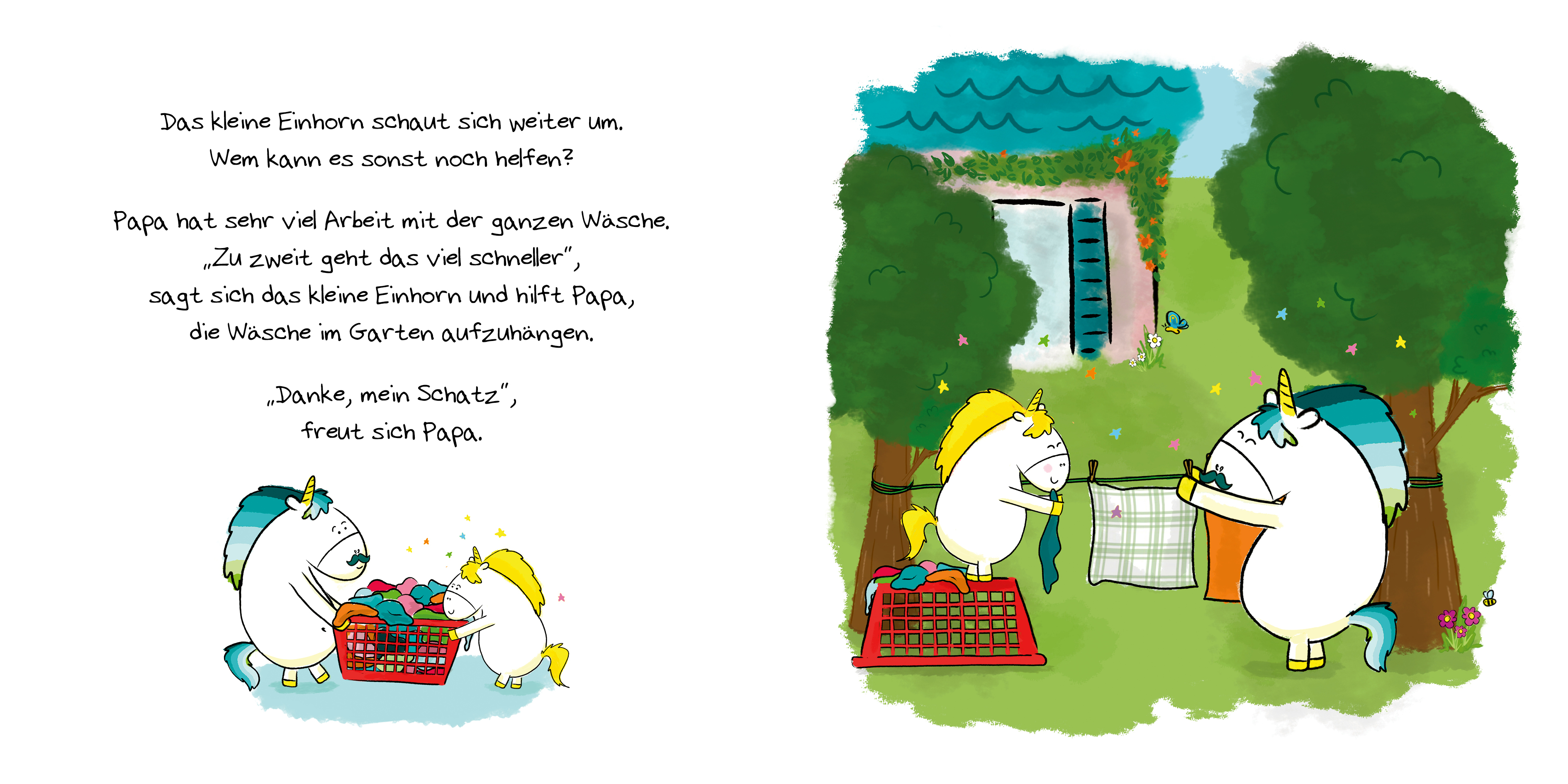 In diesem Band ist das kleine Einhorn glücklich. Die Schule ist aus und es hat alle Zeit der Welt zum Spielen. Aber leider geht es Mama und Papa nicht so gut … Vielleicht kann das kleine Fabelwesen sein Glück ja teilen?