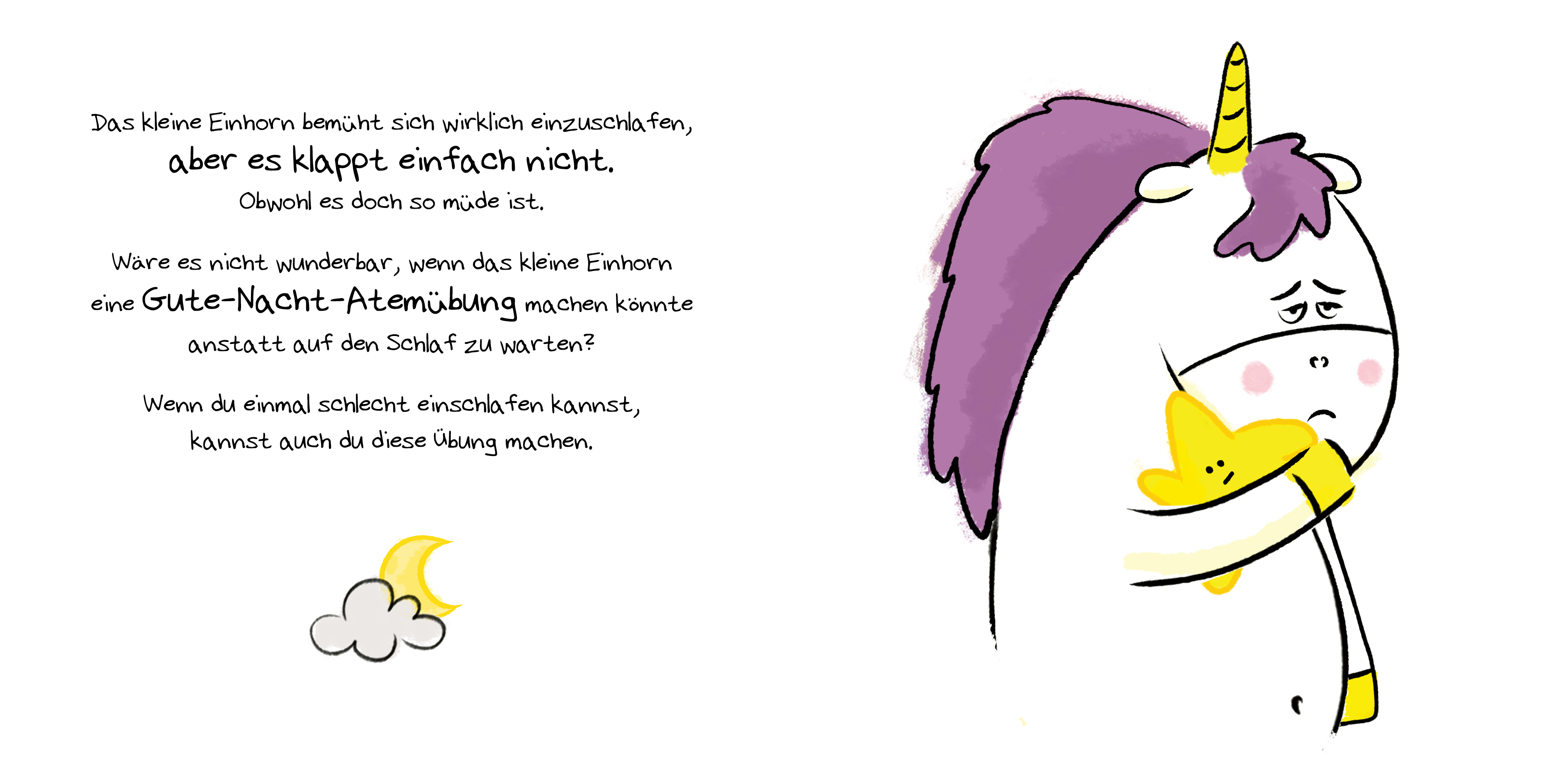 In diesem Band kann das kleine Einhorn einfach nicht einschlafen. Obwohl es schrecklich müde ist, dreht es sich immer wieder von einer auf die andere Seite. Vielleicht bringt ein magischer Sternenstaub ihm schöne Träume?