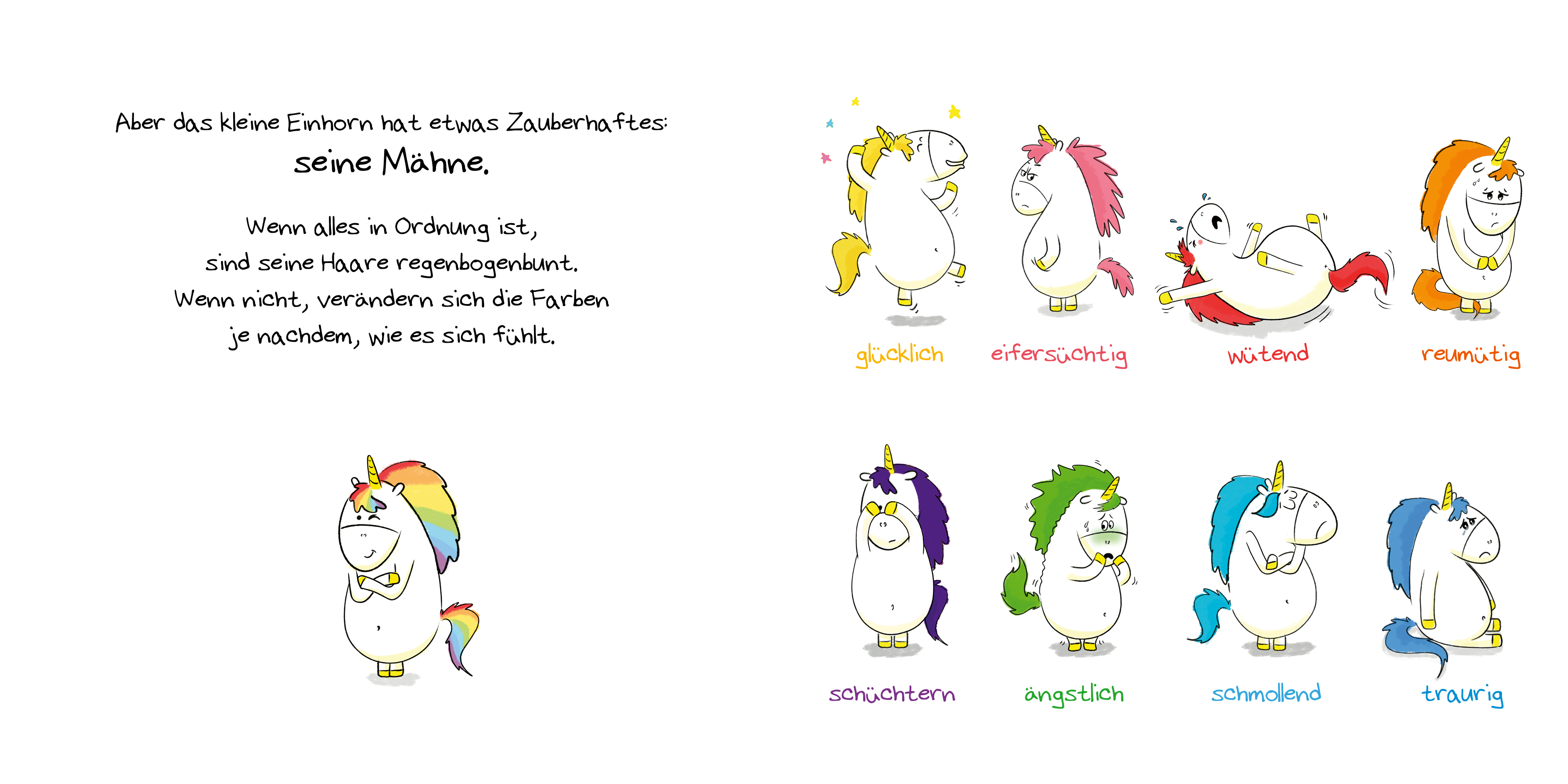 Das kleine Einhorn ist ein Einhorn wie viele andere auch, aber nur fast. Denn seine regenbogenbunte Mähne verfärbt sich, je nachdem, wie es sich fühlt! Die französische Bestseller-Reihe rund um ein junges Einhorn, das seine Gefühle entdeckt, wurde von einer Entspannungstrainerin für Kinder entwickelt.