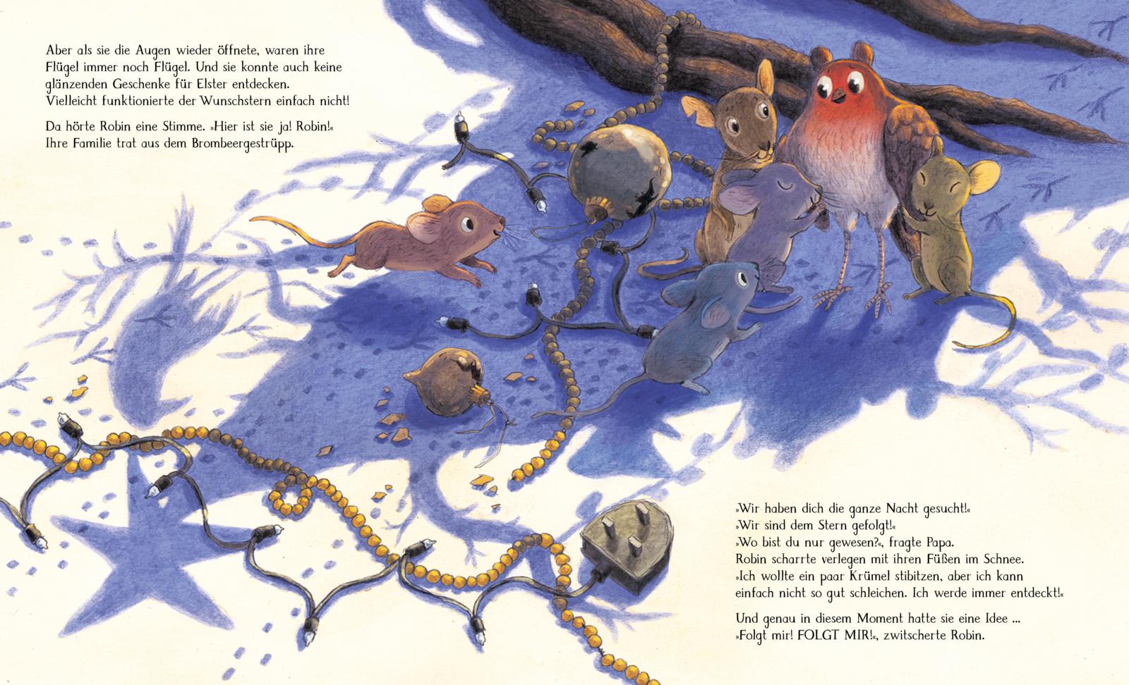 An Weihnachten werden Wünsche wahr! Das zeigt auch Robin, das kleine Rotkehlchen, das erst zu sich selbst und dann seinen wahren Platz in der Familie findet. Die wichtige Botschaft - für einander dazusein und jeden so zu akzeptieren, wie er ist, trägt die liebevoll von Briony May Smith illustrierte Geschichte nach dem gleichnamigem Netflix Musical-Film. Ein Bilderbuchfest für die ganze Familie!