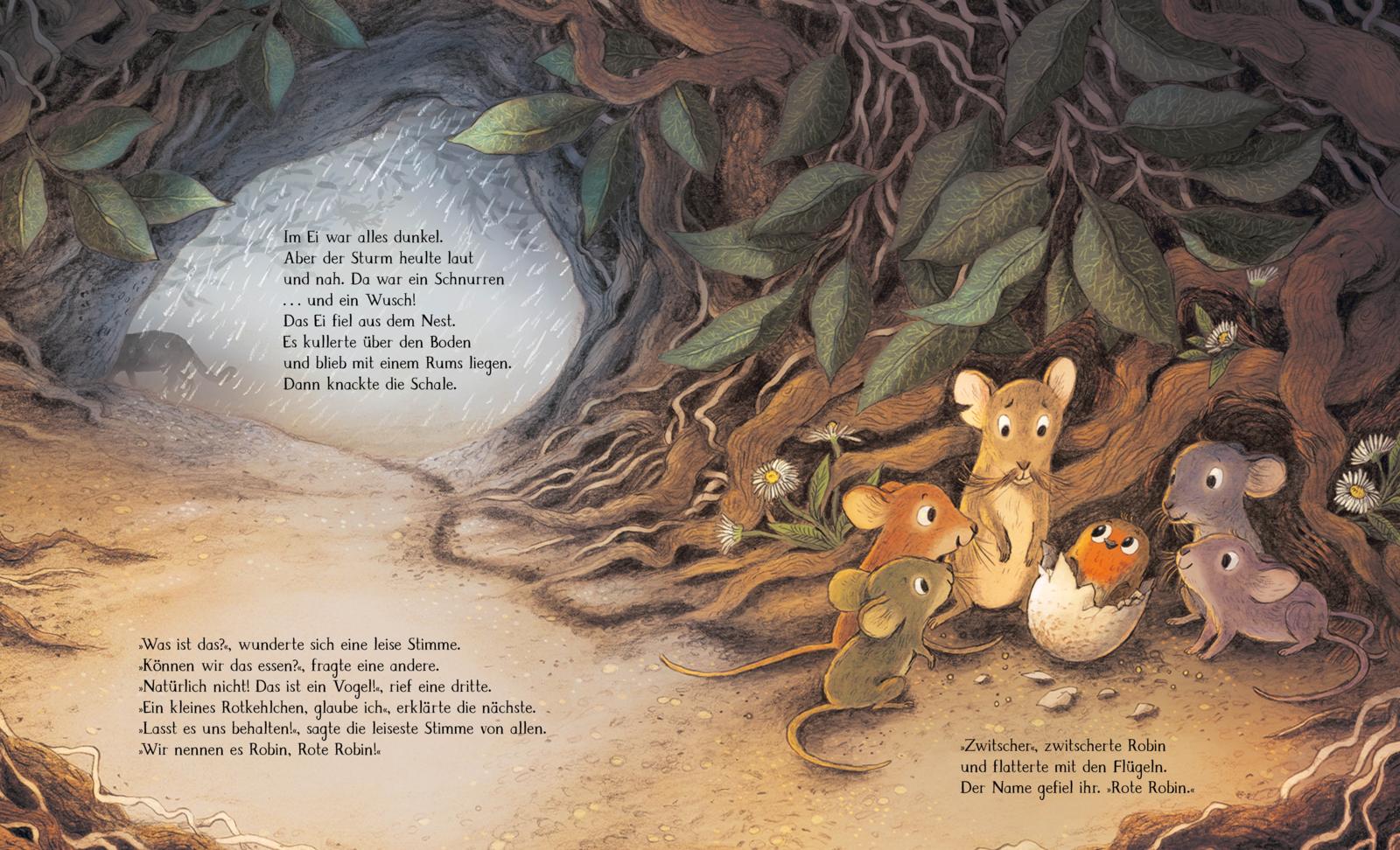Robin, das kleine Rotkehlchen-Mädchen, wächst bei einer Mäusefamilie auf. Doch so sehr sie sich auch bemüht: Als kleines Vögelchen ist sie einfach nicht geschickt im Krümel-Stibitzen. Jedes Mal lockt sie die gefährliche Katze aus ihrem Versteck. Aber Robin möchte ihrer Familie unbedingt zeigen, dass eine richtige Maus in ihr steckt. Das ist ihr größter Wunsch! Gemeinsam mit der schlauen Elster schmiedet sie einen waghalsigen Plan …