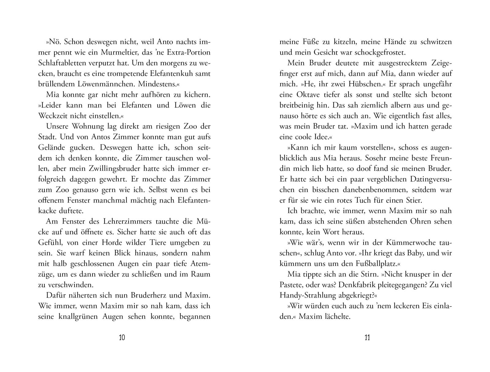 Körpertausch mal anders – Eine turbulent-lustige Zwillingsgeschichte für Mädchen und Jungs ab 11 Jahren Anna und Anto Anders sind Zwillinge – und gehen sich schrecklich auf die Nerven. Die Phase in Mamas Bauch mitgerechnet sind sie nun schon 15 Jahre gezwungen, ihr Leben zu teilen. Als Anna immer häufiger dieses Kribbeln verspürt, wenn sie Antos besten Freund Maxim sieht, spitzt sich die Lage zu. Gerne würde sie mehr Zeit mit Maxim verbringen. Alleine. Ohne Anto. Und da passiert es plötzlich! Anna steckt im Körper ihres Bruders! Und Anto in dem seiner Schwester. Gab es vorher schon viel Verwirrung, geht’s jetzt erst so richtig los. Überraschend, witzig und mit Tiefgang.