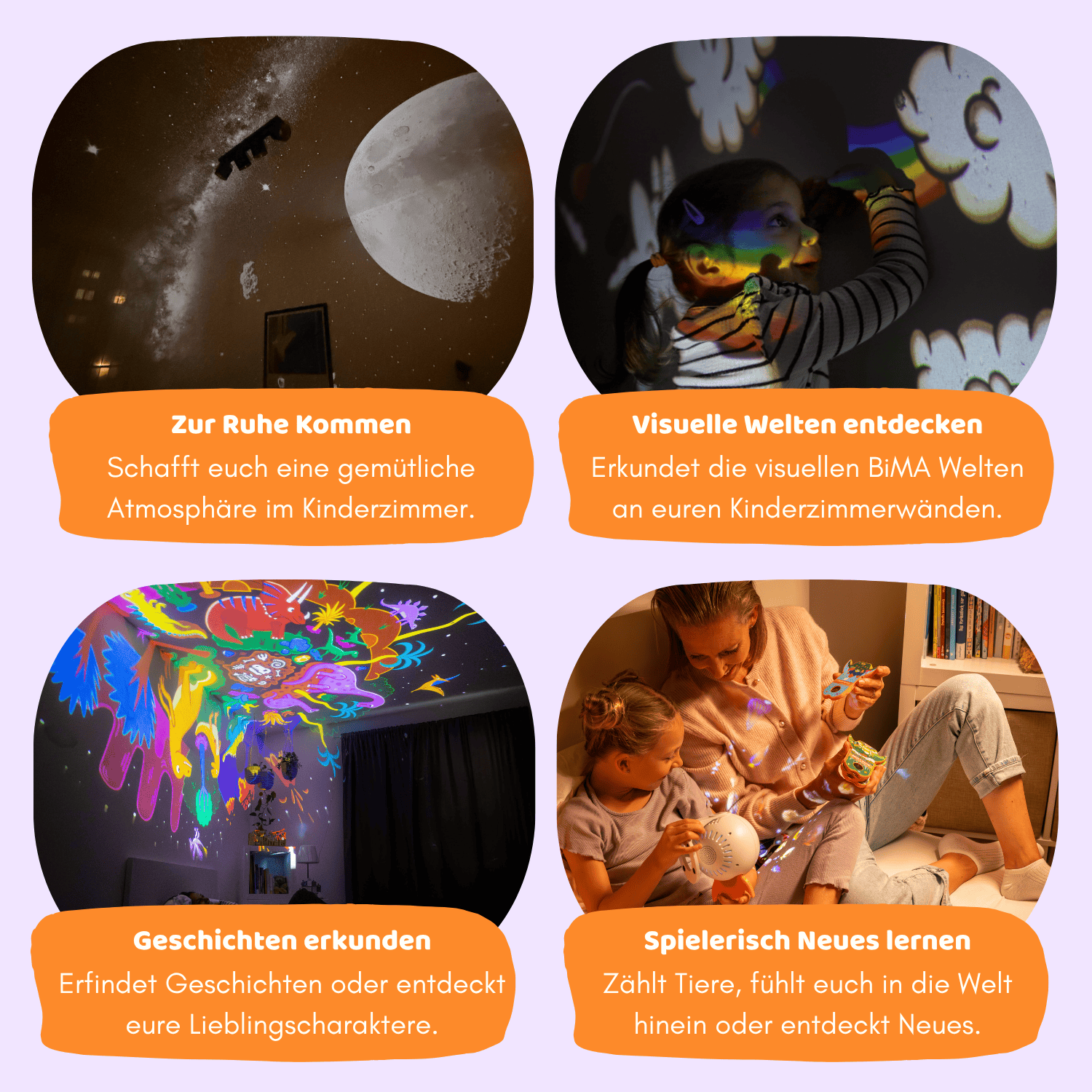 Entdeckt gemeinsam das BiMAversum im eigenen Kinderzimmer und taucht ein in endlose Fantasiewelten – ganz ohne Bildschirm. Lasst den BiMA zu eurem liebevollen Begleiter werden, um Entspannungsrituale zu schaffen.