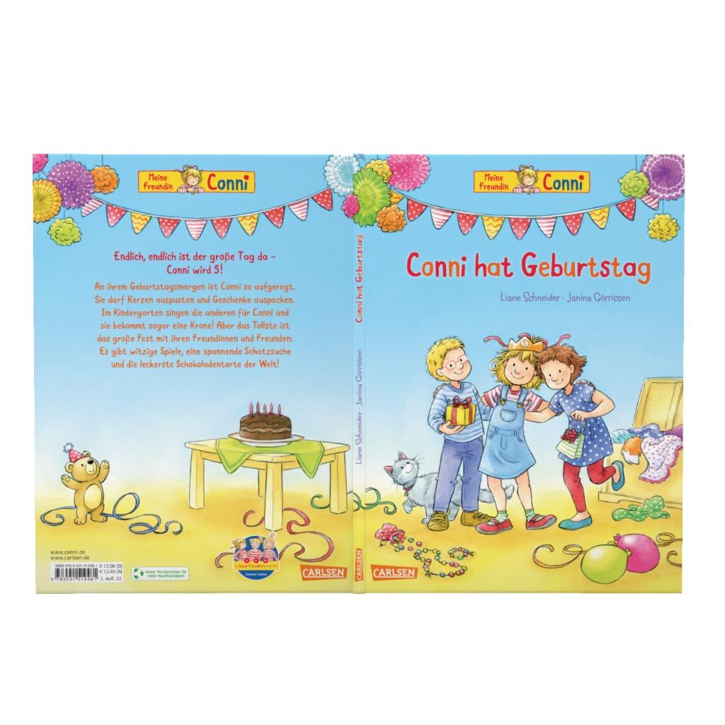 - Beschreibung Geburtstag zu haben ist so toll! Conni freut sich schon lange darauf. Sie bastelt Einladungen mit Mama, backt Muffins mit Papa und dekoriert mit beiden die Wohnung für die große Party. Endlich ist es so weit! Am Geburtstagsmorgen erwartet Conni ein besonderes Frühstück, sie darf 5 Kerzen auspusten und Geschenke auspacken. Im Kindergarten bekommt sie sogar eine Krone! Aber das Tollste ist das Fest mit ihren Freund*innen: Es gibt witzige Spiele, eine coole Schatzsuche und den leckersten Schokokuchen!