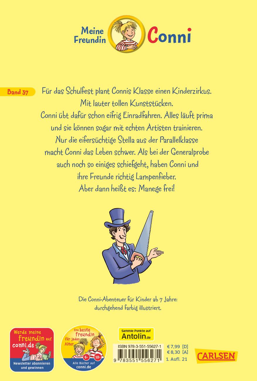 Connis Klasse plant einen Kinderzirkus mit lauter tollen Kunststücken. Dafür übt Conni schon eifrig Einradfahren und Paul seine Skateboardtricks. Alles läuft prima und sie können sogar mit richtigen Artisten trainieren. Nur die eifersüchtige Stella aus der Parallelklasse macht Conni das Leben schwer. Und als dann bei der Generalprobe auch noch alles schiefgeht, haben Conni und ihre Freunde richtig Lampenfieber vor der Aufführung. Aber dann heißt es: Manege frei!