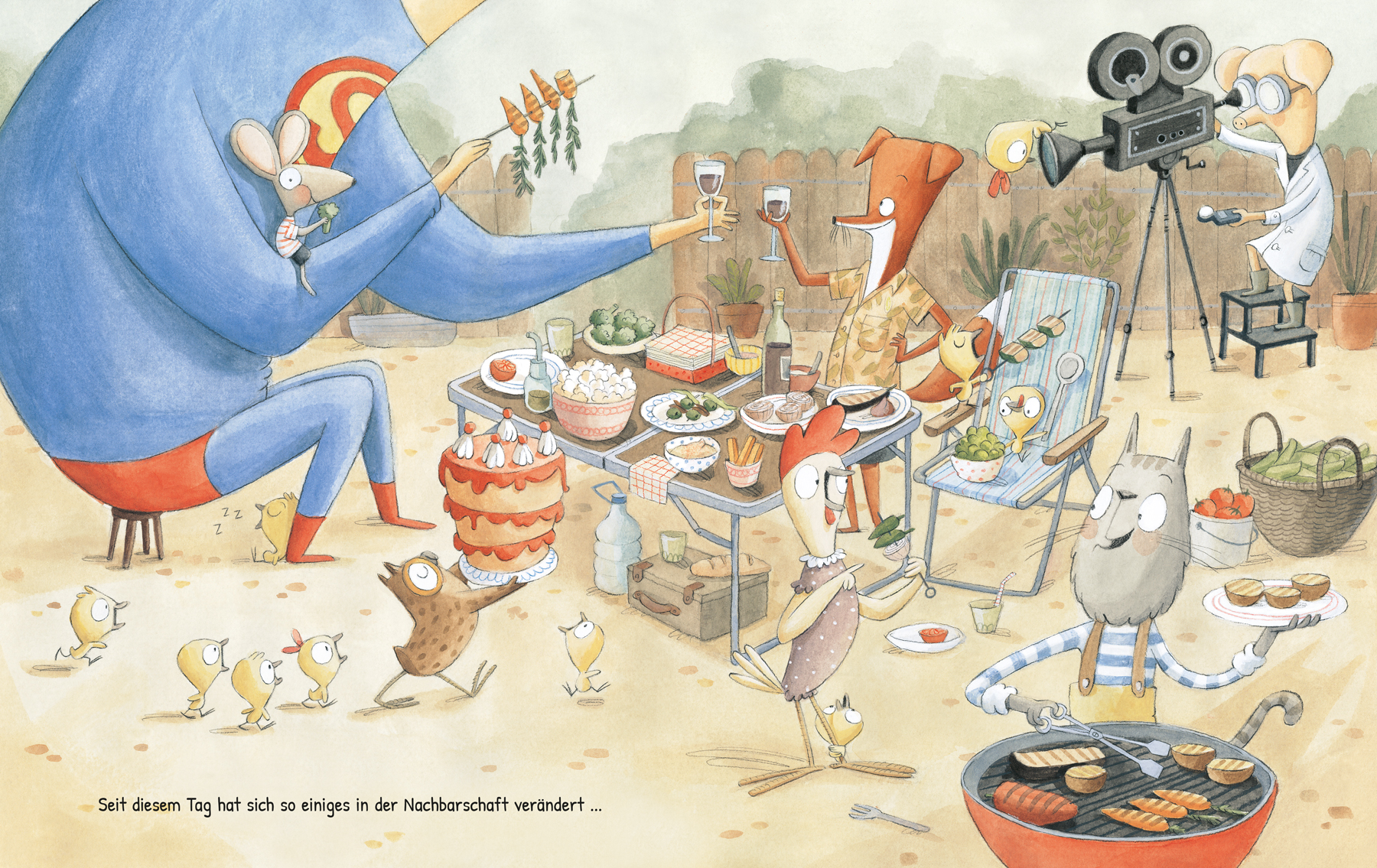In dieser Straße lebt jede*r für sich. Dank eines unerwarteten Internetausfalls wird das Leben der Nachbarschaft auf den Kopf gestellt. Der stets seriös wirkende Fuchs findet endlich ein Publikum für sein geheimes Hobby - Jonglieren. Die Maus versteckt sich nicht länger hinter ihrem Drachenkostüm und findet heraus, dass ihre Furcht vor dem Nachbarskater unbegründet war. Und mit der Hilfe ihrer technisch begabten Nachbarin kann die Eule endlich wieder online Solitär spielen. Die Bewohner*innen überwinden ihre Ängste voreinander und finden zusammen ihre Talente und Gemeinsamkeiten. Eine humorvolle Geschichte über das Zusammenleben. Empfohlen ab 3 Jahren