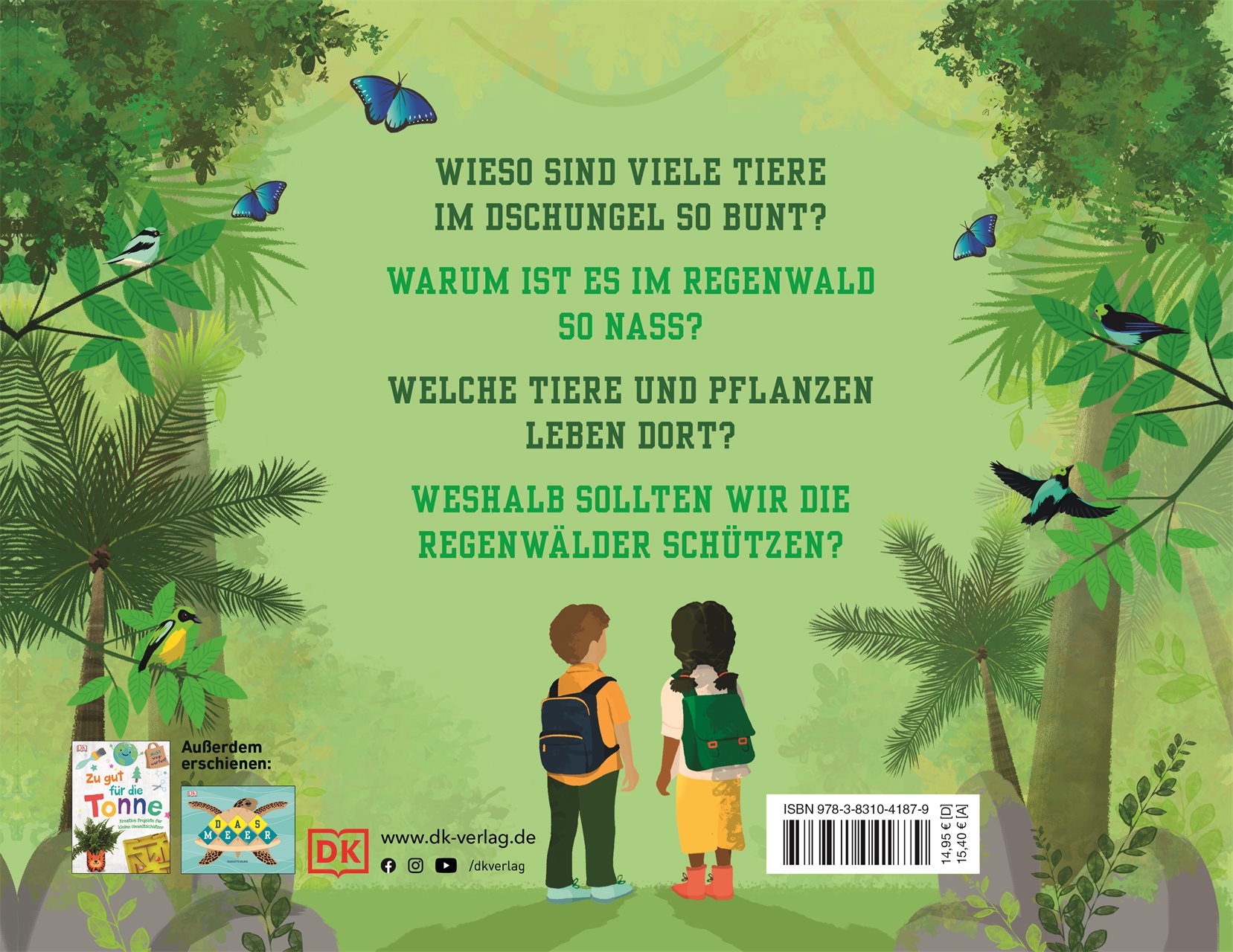 Hier ist das Dschungelfieber ausgebrochen! Dieses wunderschön illustrierte Sachbuch lässt Kinder ab 5 Jahren in die spektakuläre Tier- und Pflanzenwelt des Regenwalds eintauchen. Auf farbenprächtigen Illustrationen beobachten die Kinder schillernde Vögel bei der Nahrungssuche, begleiten einen Wickelbär bei seinen nächtlichen Streifzügen und lernen mehr über den Aufbau des Regenwaldes. Dazu gibt es jede Menge anschauliches Naturwissen und wichtige Informationen zu aktuellen Umweltproblemen wie Abholzung und riesigen Anbauflächen in Form von beeindruckenden, detaillierten Abbildungen.