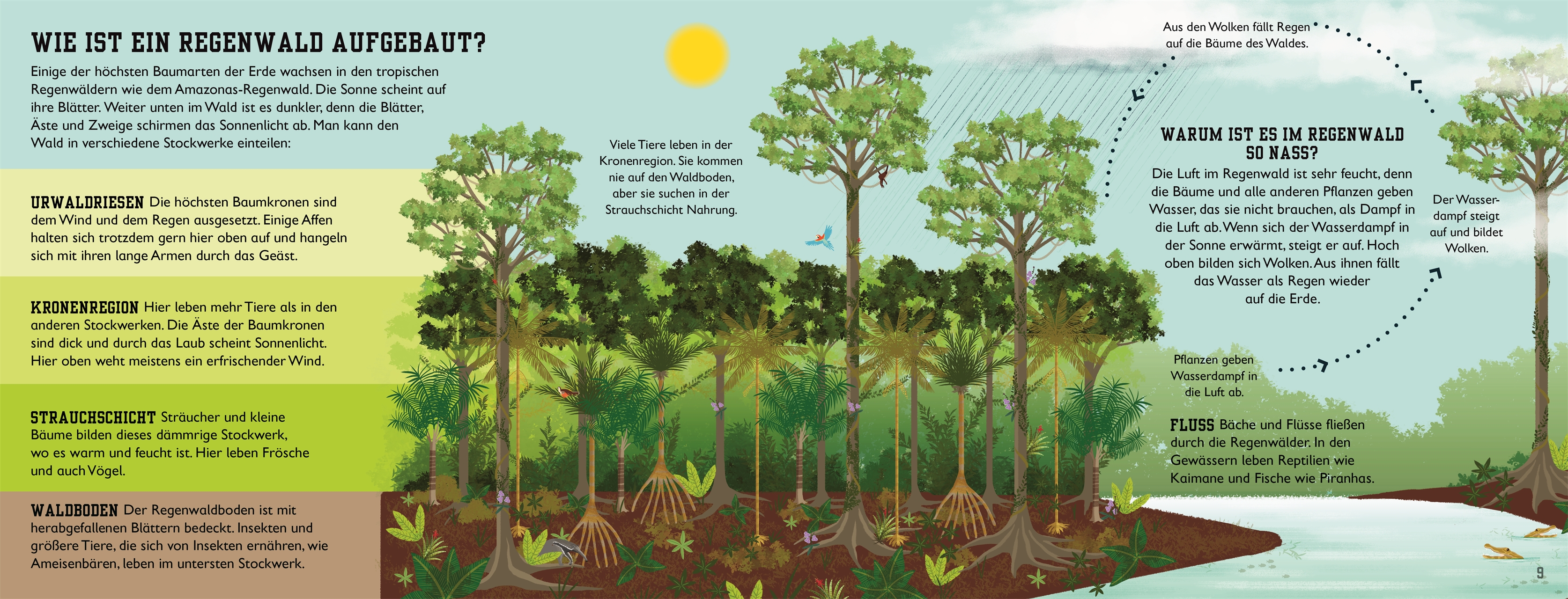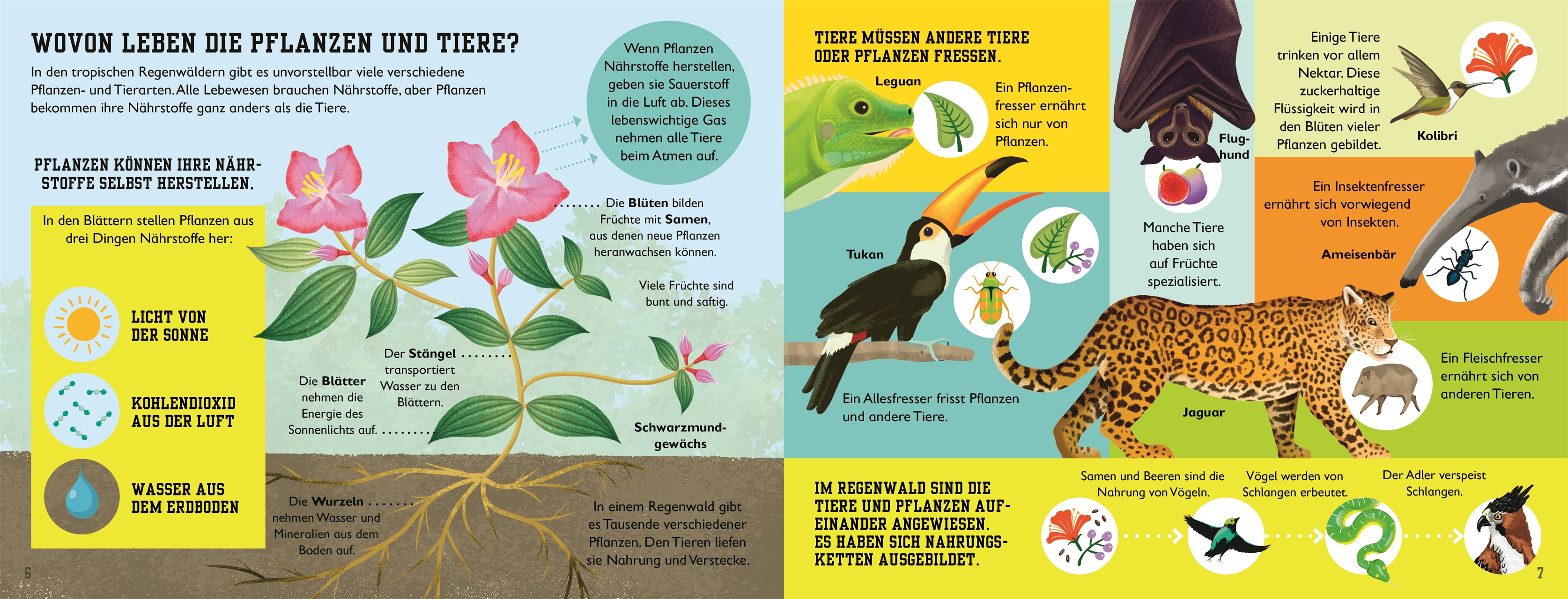 - Faszinierende Natur-Einblicke: Von den Tiefen der Wurzeln bis zu den obersten Baumkronen – Seite für Seite werden die Geheimnisse des Regenwalds gelüftet.