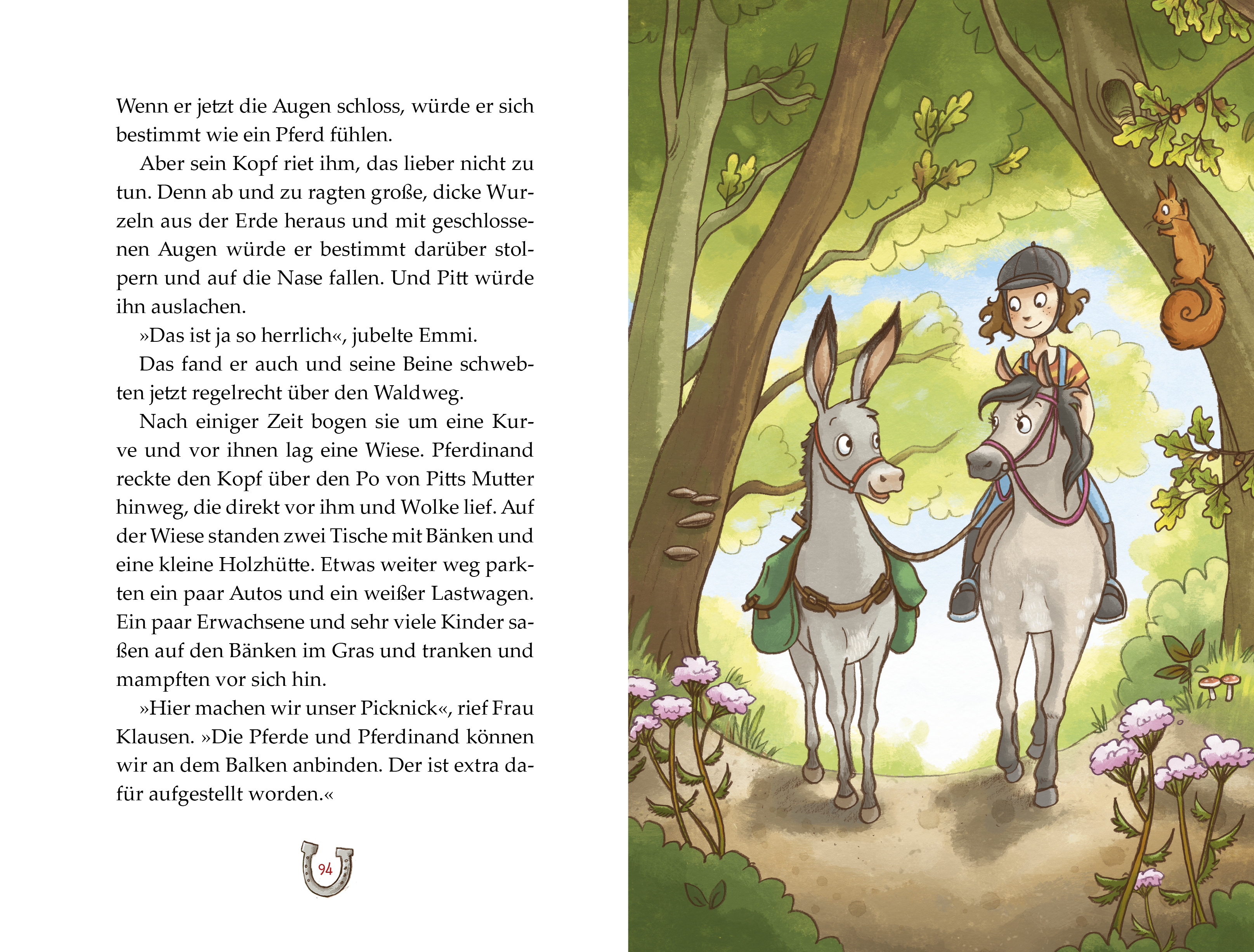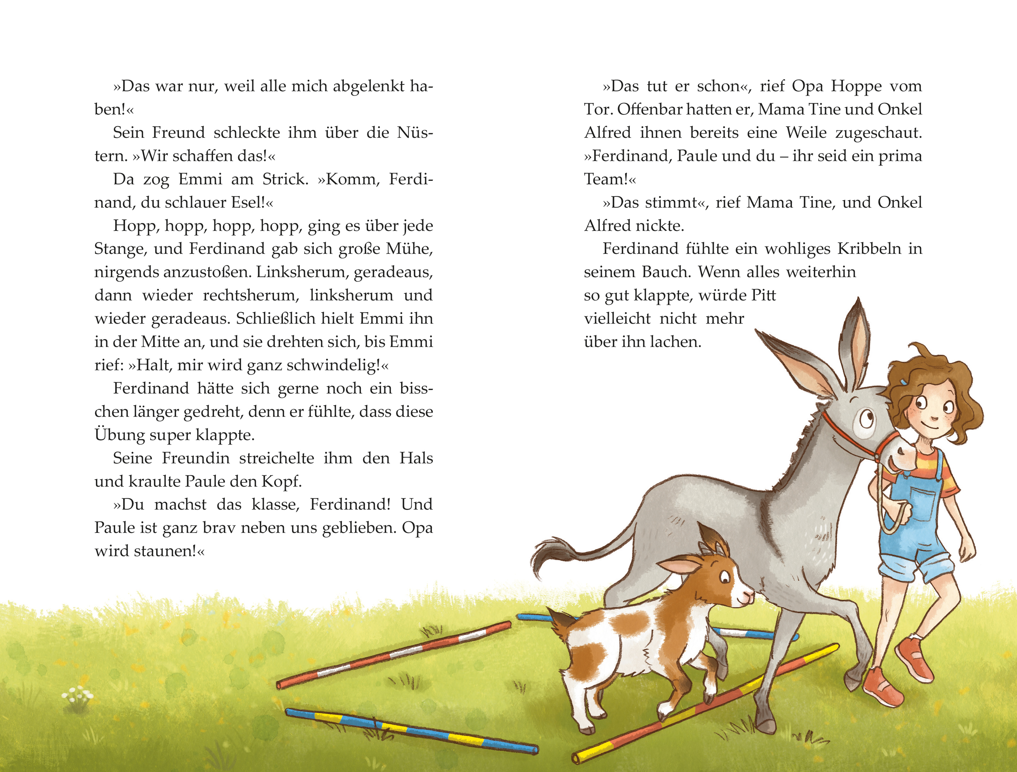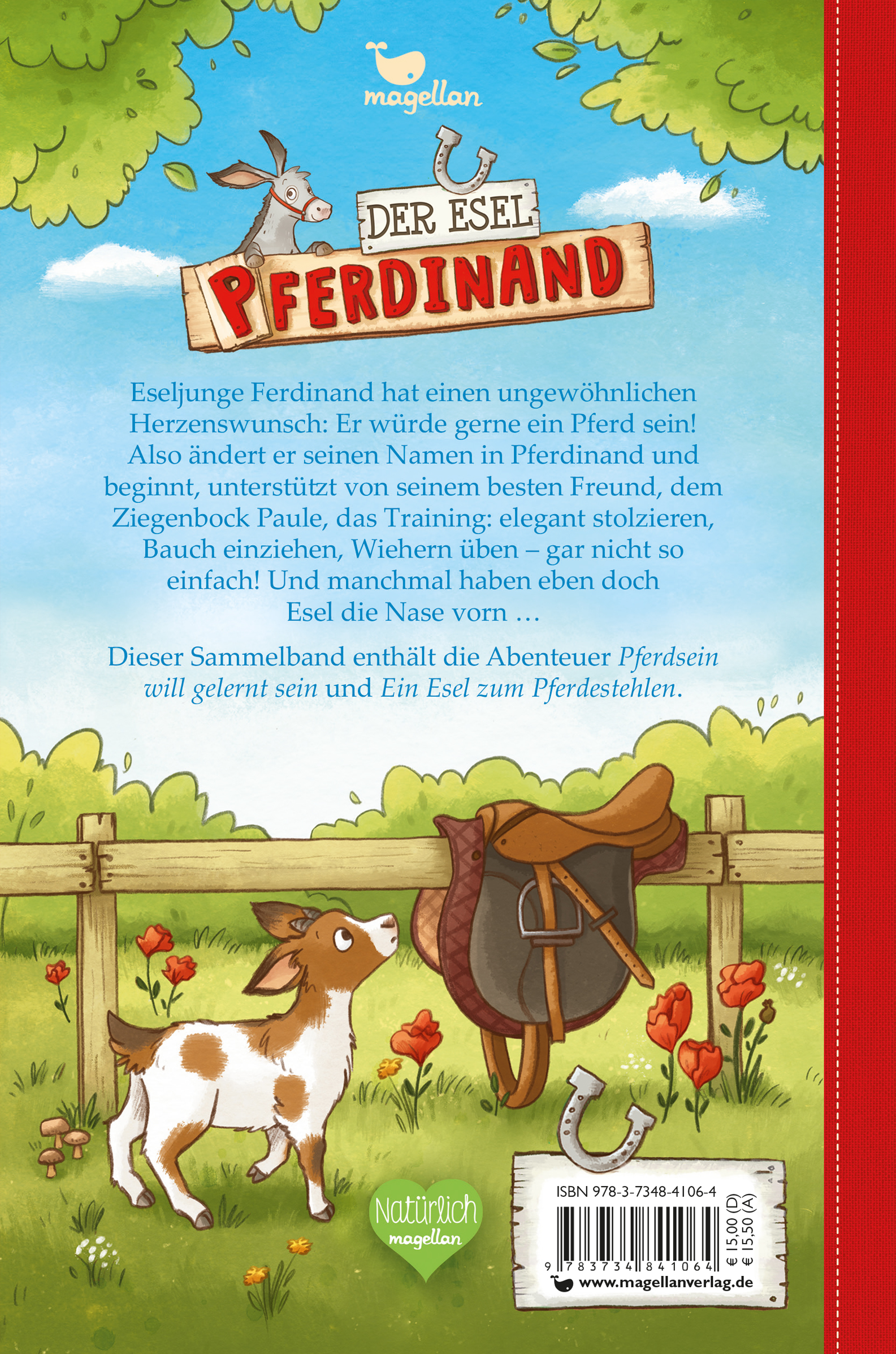 Der Eseljunge Ferdinand hat einen ungewöhnlichen Herzenswunsch: Er würde gerne ein Pferd sein! Kurzerhand ändert er seinen Namen in Pferdinand und beginnt, unterstützt von seinem besten Freund, dem Ziegenbock Paule, und Ponymädchen Wolke, das Training: elegant stolzieren, Bauch einziehen, Wiehern üben – gar nicht so einfach! Und in manchen Situationen haben eben doch Esel die Nase vorn … Dieser Sammelband enthält die Abenteuer „Pferdsein will gelernt sein“ und „Ein Esel zum Pferdestehlen“.