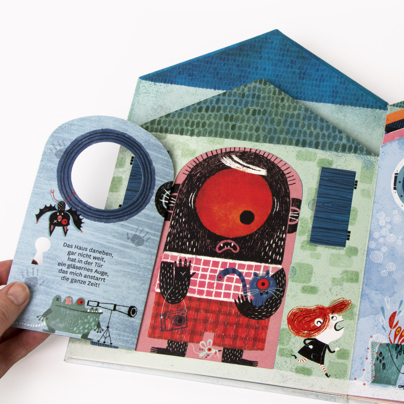 - Beschreibung Ein liebevoll gestaltetes interaktives Bilderbuch, das Kindern die Angst vor Unbekanntem nimmt! Merkwürdige Nachbarn leben in der Gruselstraße. Schaurige Gespenster, ein riesiger Yeti und ein furchterregend bellender Hund wohnen dort – und an all ihren Häusern muss das Mädchen vorbeigehen, wenn sie Opa besuchen will. Klar, dass sie erst einmal Angst hat. Doch manchmal muss man nur hinter die Türen schauen, um sich nicht mehr zu fürchten, weiß der Opa. Und so macht er sich mit seiner Enkelin auf, einmal die ungewöhnlichen Nachbarn in der Gruselstraße zu besuchen. Denn hinter den Fassaden gibt es so viele Überraschungen zu entdecken: eine Kostümparty der Gespenster, einen gärtnernden Yeti und einen sehr verpeilten Minotaurus.