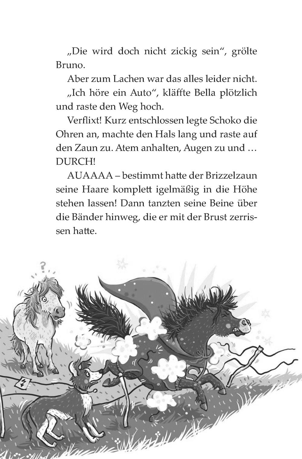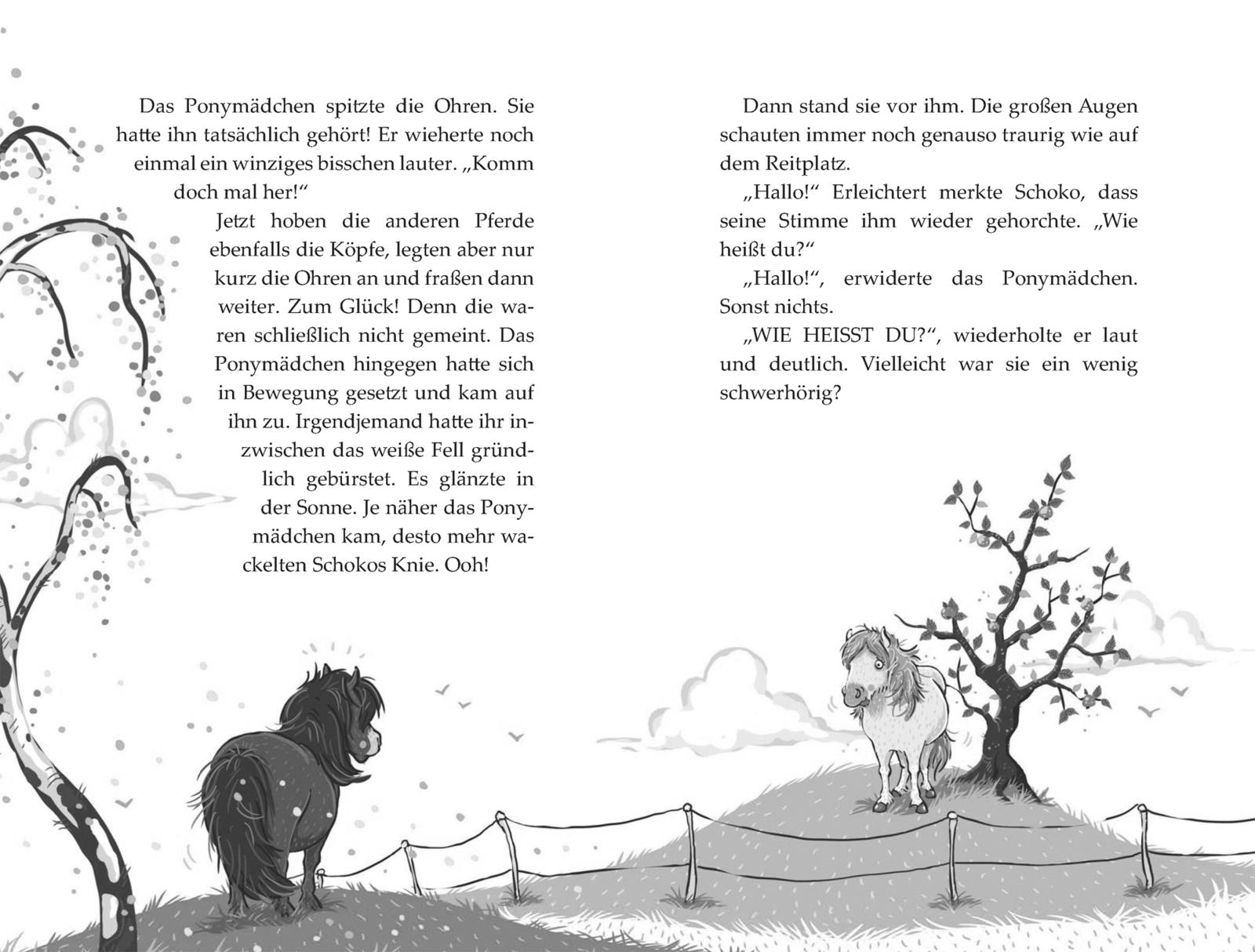 Wer ist denn DAS? Schoko traut seinen Augen kaum. Ausgerechnet auf dem Gestüt Donnerbalken ist ein neues Pony eingezogen. Oder genauer gesagt, ein ziemlich nettes Ponymädchen … Elfa heißt es und kommt von ziemlich weit her. Komisch nur, dass es Schoko plötzlich gar nicht mehr gut geht. Er fühlt sich ziemlich wackelig auf den Hufen und sein Ponybauch grummelt ganz merkwürdig - er wird doch nicht etwa krank sein?