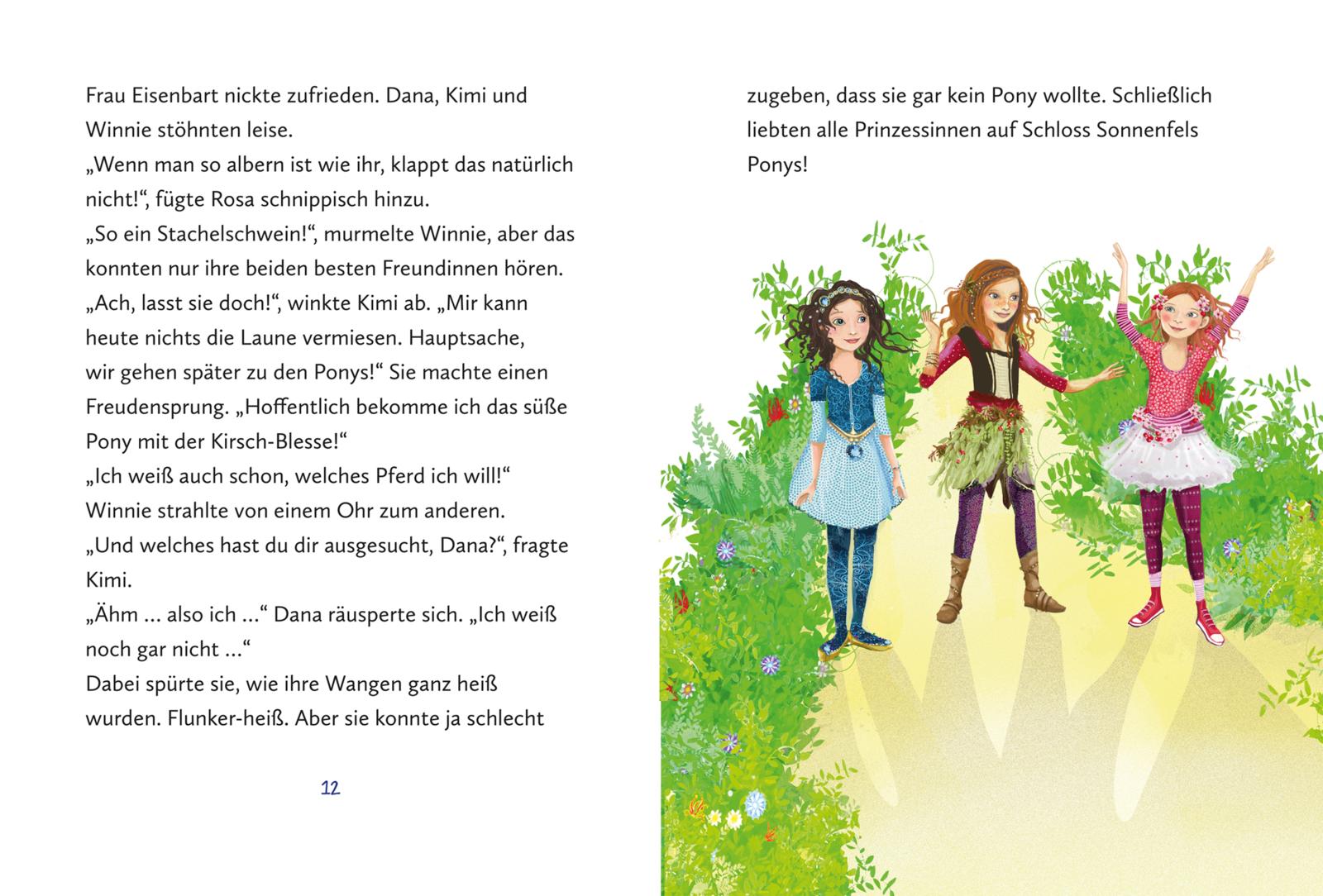 BAND 2: Die Prinzessinnen freuen sich: Endlich lernen sie reiten! Nur Dana aus dem Diamantenreich bibbert: Sie hat noch nie in ihrem Leben ein Pferd gesehen. Doch das soll ihr Geheimnis bleiben …