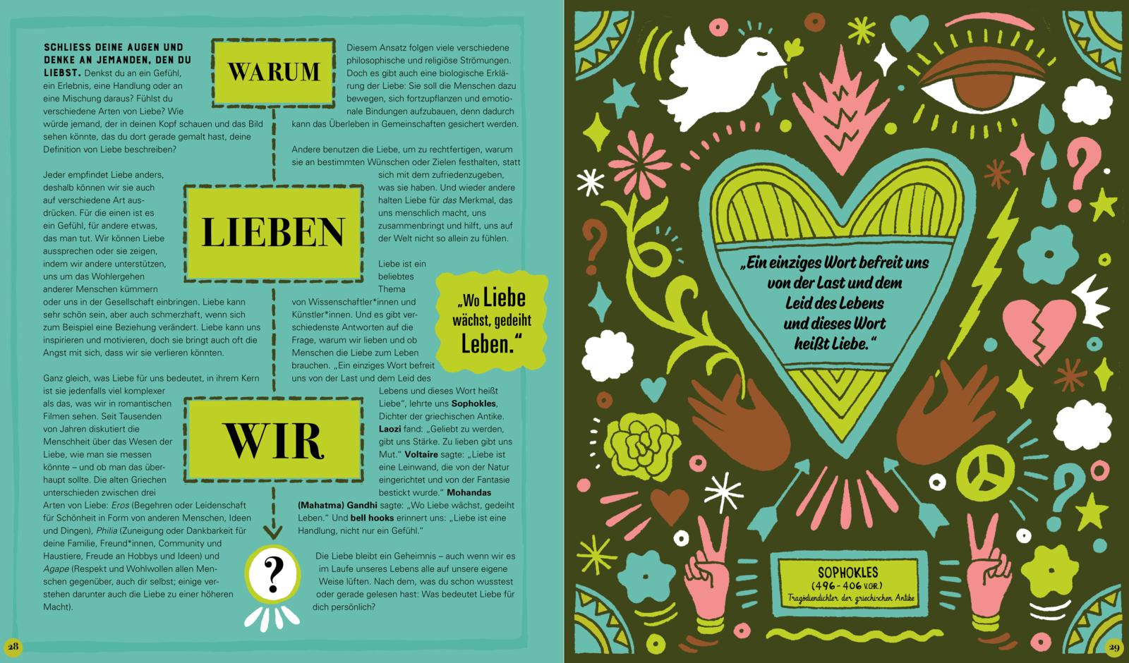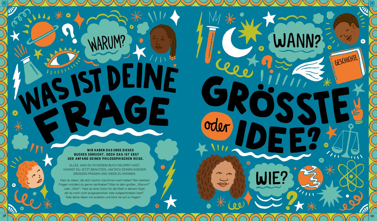 Wer bin ich? Was ist Gerechtigkeit? Und woher wissen wir, was richtig und falsch ist? Die ganz großen Fragen – irgendwann stellen wir sie uns alle auf die eine oder andere Weise. Aber wie findet man die passenden Antworten? Dieses Sachbuch bietet einen modernen und vielfältigen Blick auf die wichtigsten philosophischen Themen. Mit klugen Worten von Aristoteles oder Maya Angelou und aktuellen Beispielen regt es zum kritischen Denken an. So kann man sich selbst eine Meinung bilden und eigene Ideen entwickeln.