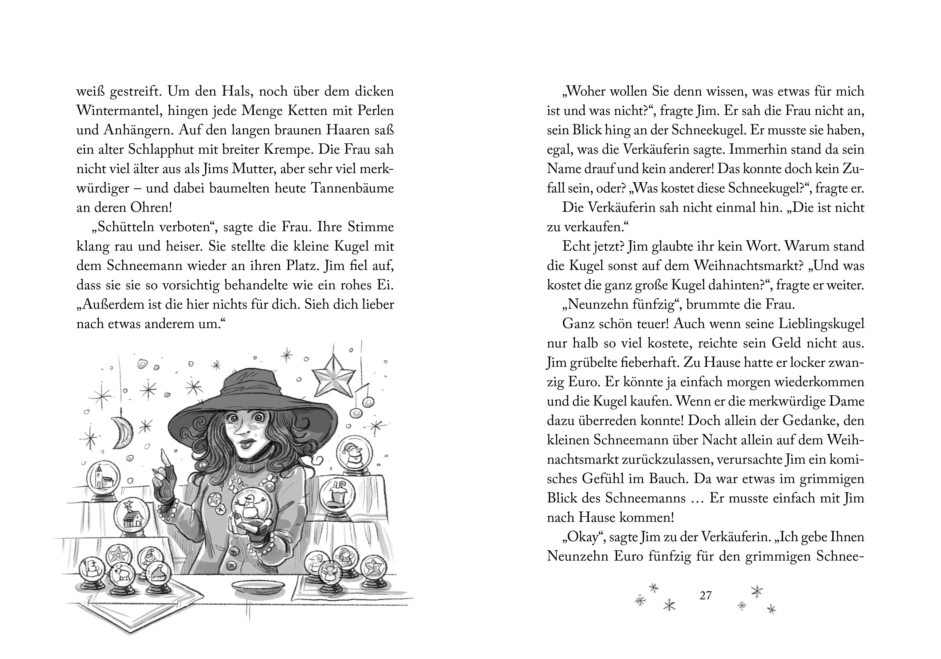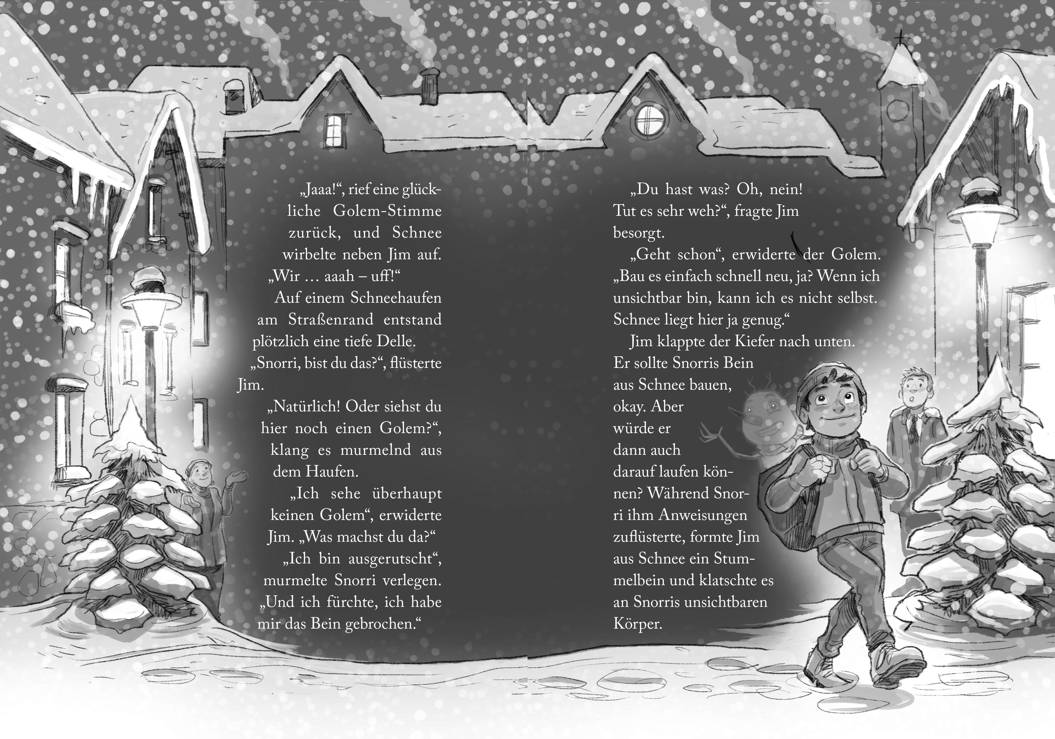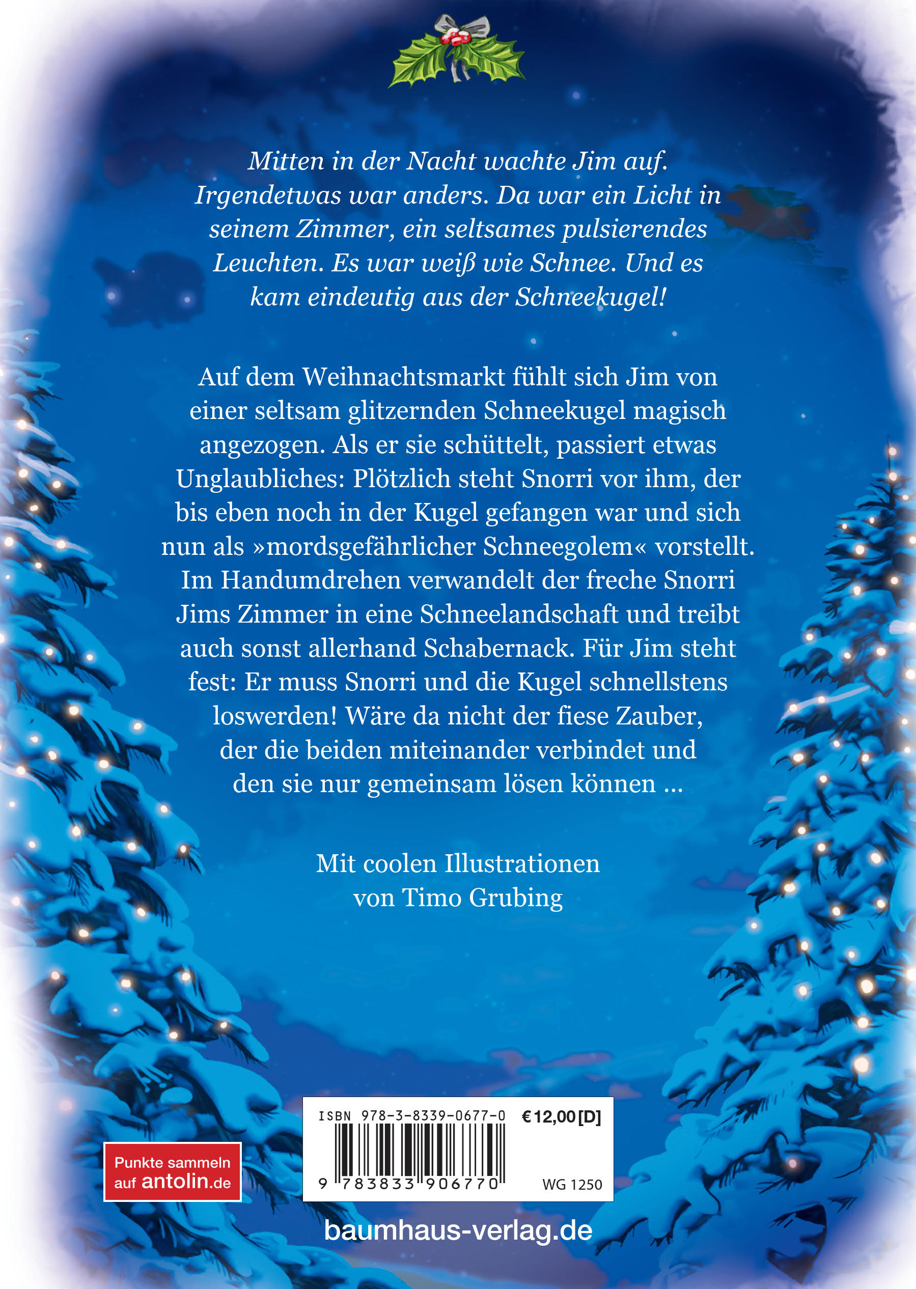 Auf dem Weihnachtsmarkt fühlt sich Jim von einer seltsam glitzernden Schneekugel magisch angezogen. Als er sie schüttelt, passiert etwas Unglaubliches: Plötzlich steht Snorri vor ihm, der bis eben noch in der Kugel gefangen war und sich nun als »mordsgefährlicher Schneegolem« vorstellt. Im Handumdrehen verwandelt der freche Snorri Jims Zimmer in eine Schneelandschaft und treibt auch sonst allerhand Schabernack. Für Jim steht fest: Er muss Snorri und die Kugel schnellstens loswerden! Wäre da nicht der fiese Zauber, der die beiden miteinander verbindet und den sie nur gemeinsam lösen können ...