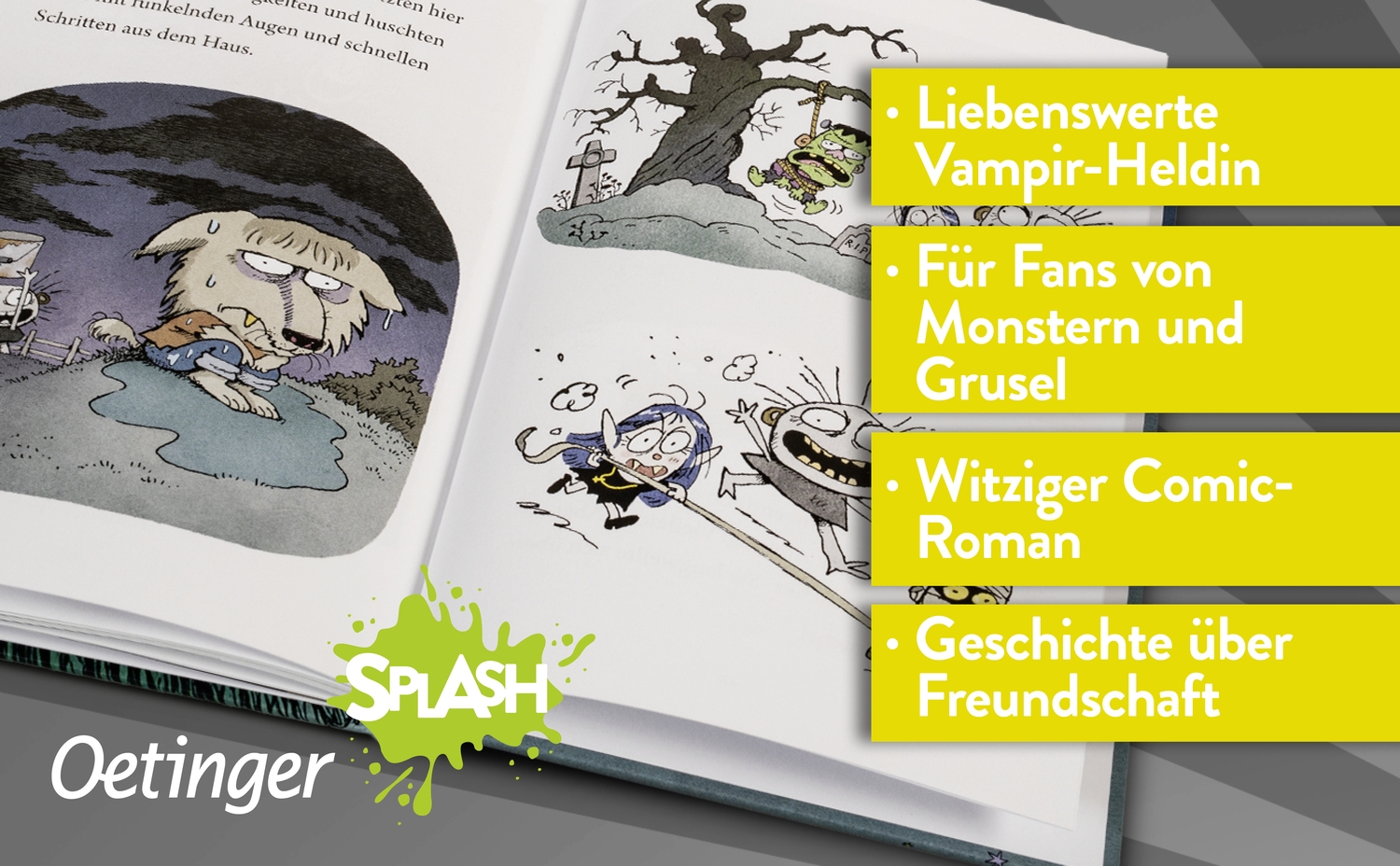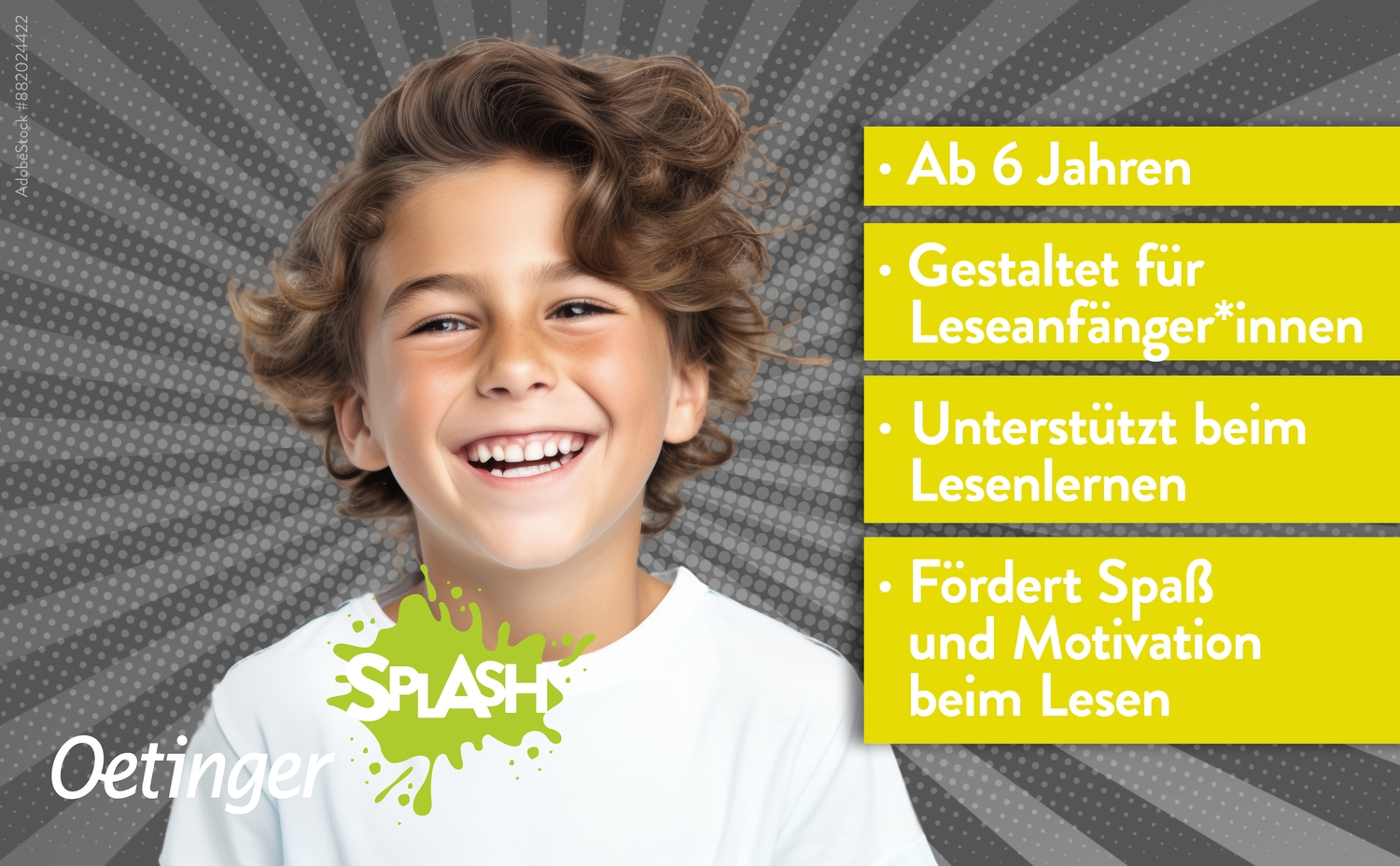 Ob Action, Abenteuer, Freundschaft oder Fantasy - bei Oetinger SPLASH wird der Spaß am Lesen großgeschrieben! Alle Bücher sind genau auf die Interessen und das Lesevermögen von Erstleser*innen abgestimmt. Lustige Comic-Elemente machen die Geschichten lebendig. Kurze und leicht verständliche Texte erleichtern das Lesen üben. Tolle Illustrationen unterstützen das Textverständnis und sorgen für ein kurzweiliges Leseerlebnis. Hier wird das Lesen lernen zu einem großen Abenteuer!