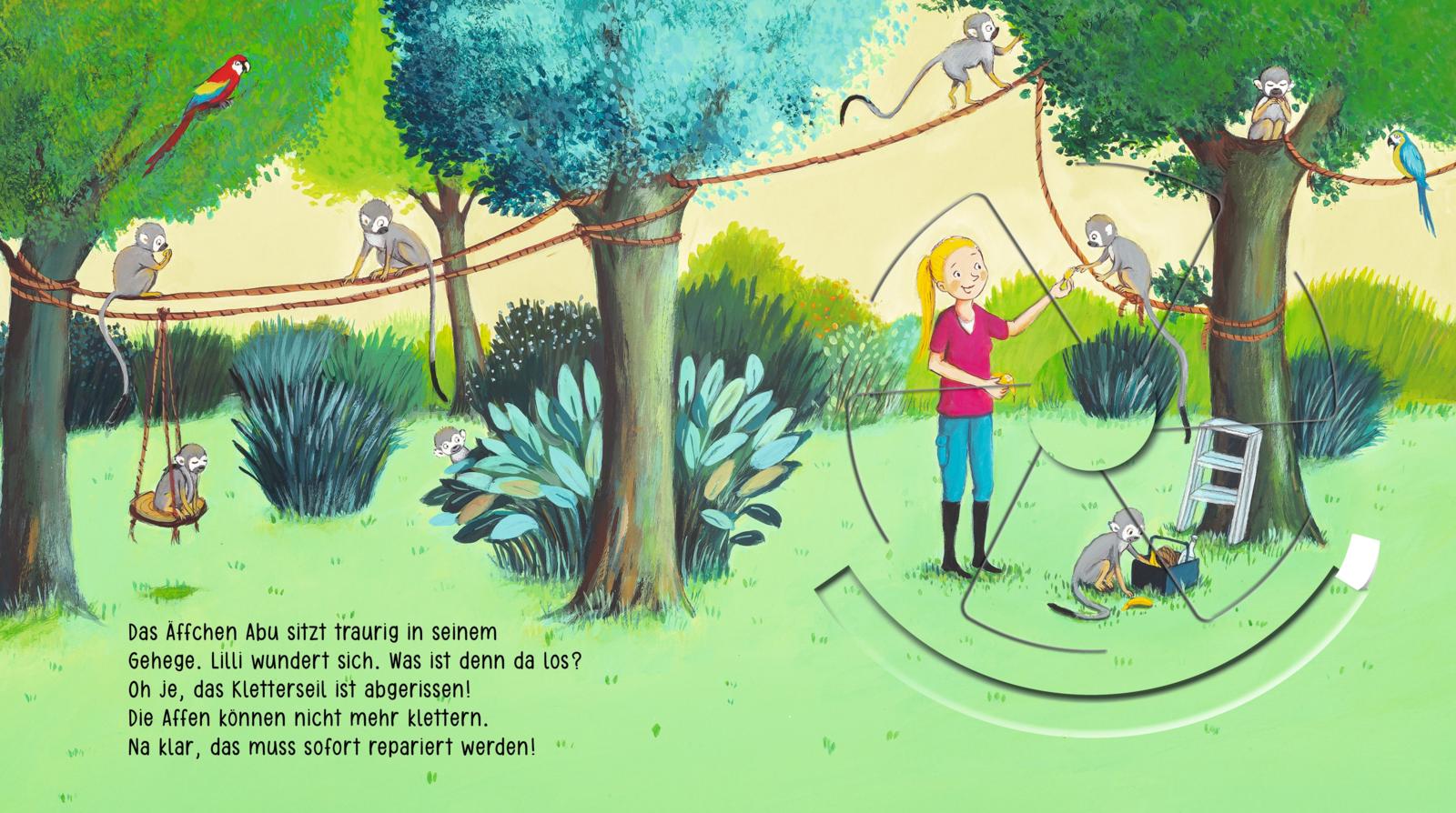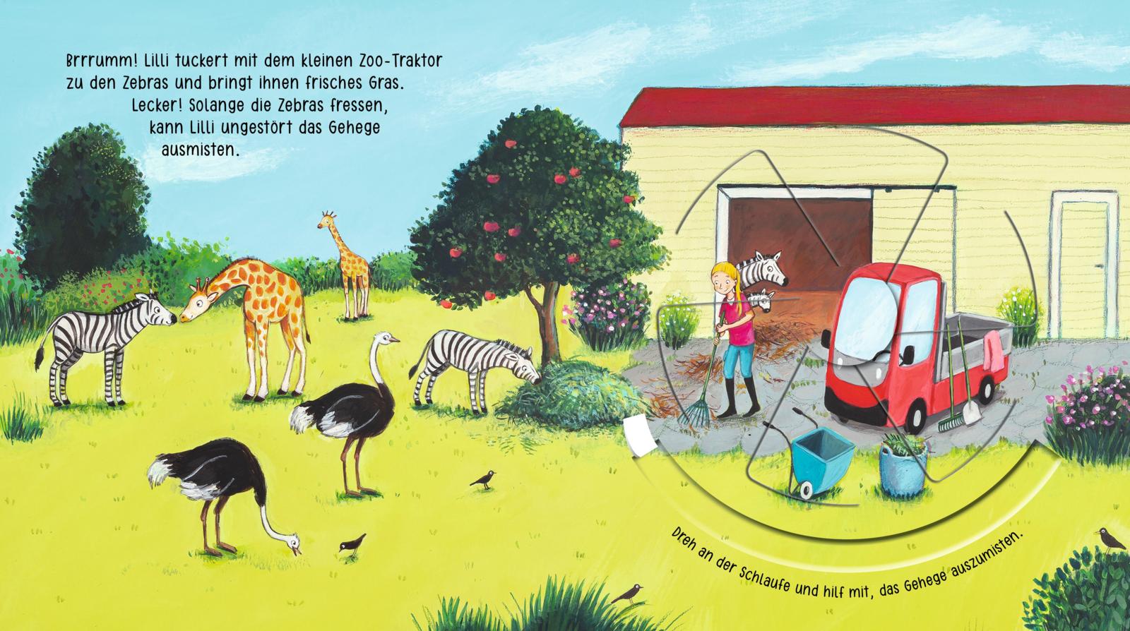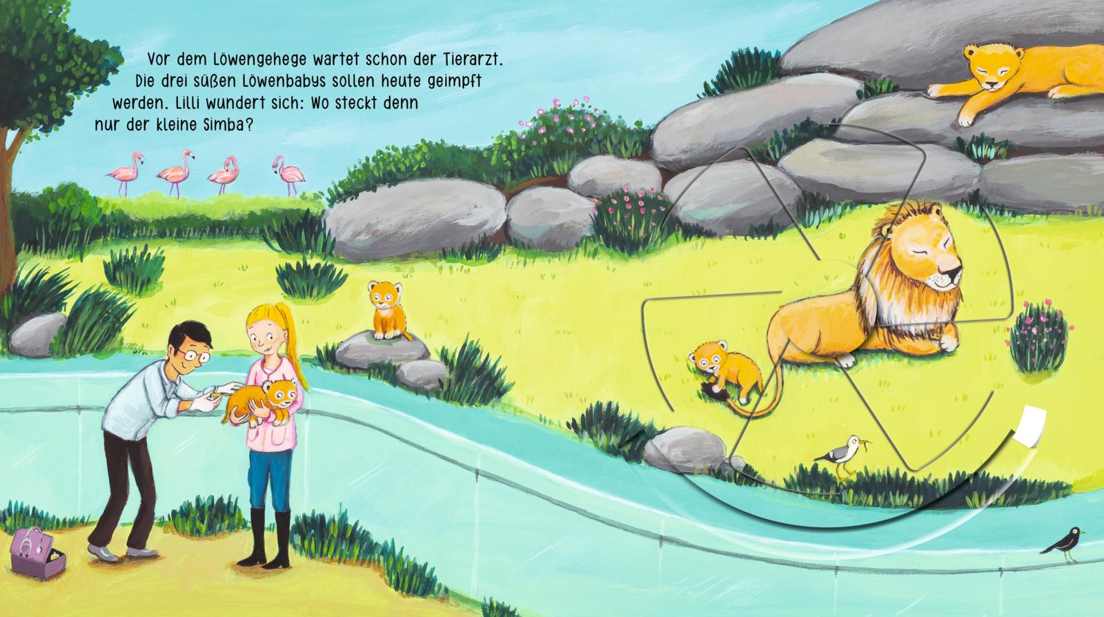 Bei diesem interaktiven Mitmachbuch können schon die Allerkleinsten ab 18 Monaten beim Versorgen der Zootiere mithelfen: die Elefanten waschen, das Kletterseil für die Äffchen reparieren, die hungrigen Pinguine fürttern und das verschwundene Löwenbabay Simba wiederfinden.