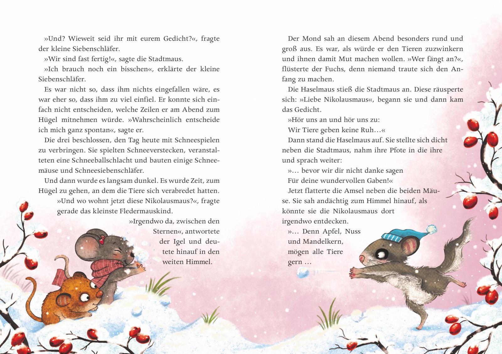 Die Stadtmaus ist in den Wald gekommen, um die Haselmaus zu besuchen. Und was hat sie im Gepäck? Ein ganzes Fest! Der kleine Siebenschläfer staunt nicht schlecht, denn von Weihnachten hat er noch nie gehört. Die Stadtmaus zeigt ihnen alles, was man wissen muss. Sie backen Plätzchen, reimen Gedichte, suchen den perfekten Baum und basteln den wunderbarsten Weihnachtsschmuck. Aber das Schönste ist der Weihnachtszauber – denn der erfasst nicht nur den kleinen Siebenschläfer, sondern alle Tiere im Wald.