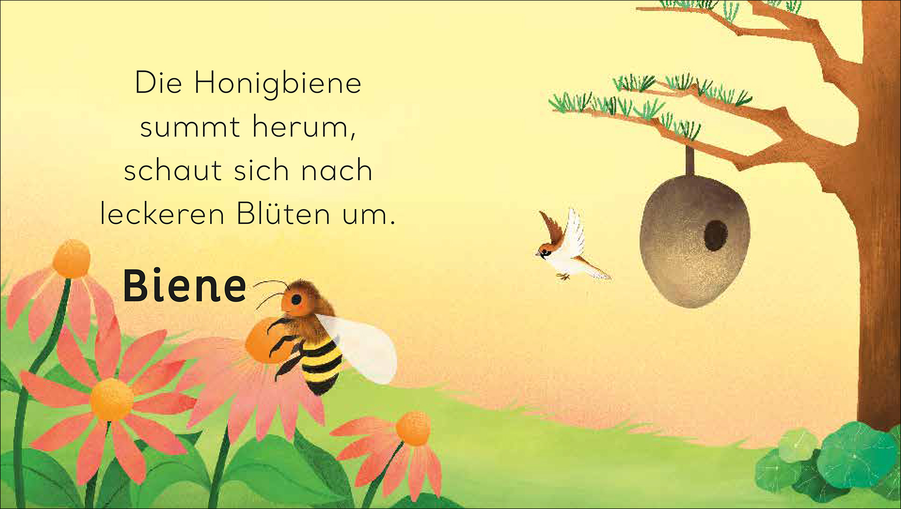 - Beschreibung In jedem Garten lässt sich eine faszinierende kleine Welt entdecken. Mit fünf Geschichten lernst du einen besonderen Lebensraum und seine Bewohner kennen: Geh mit Biene und Schmetterling auf die Suche nach den schönsten Blumen, und beobachte, wie die Spatzen fröhlich in der Hecke zwitschern. Der gereimte Text und die doppelten Klappen sorgen für noch mehr Spaß bei den ersten Entdeckungsreisen in die Natur – für Kinder ab 12 Monaten.