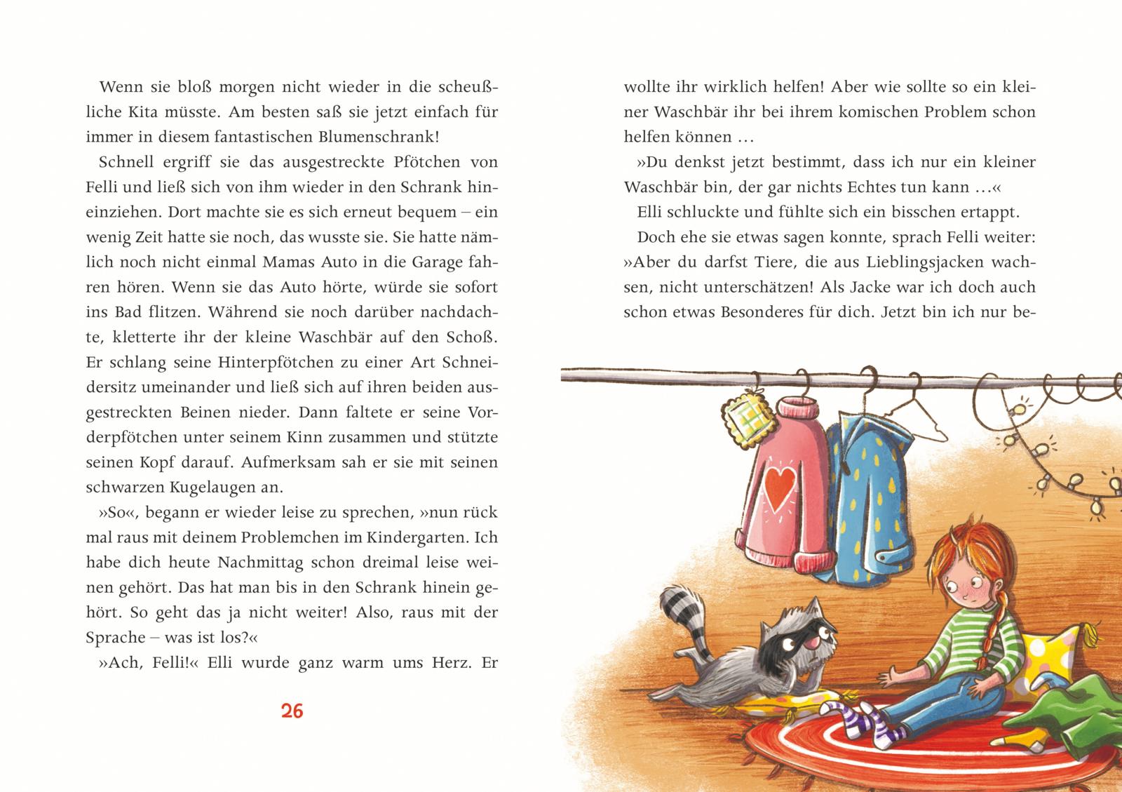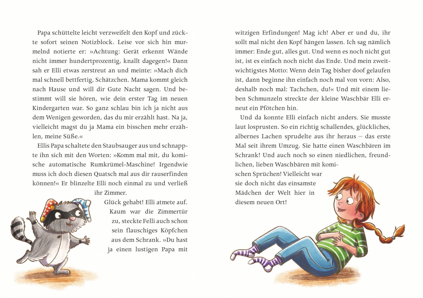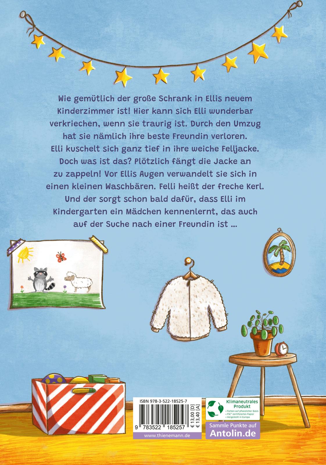 Wie gemütlich der große Schrank in Ellis neuem Kinderzimmer ist. Hier kann sich Elli wunderbar verkriechen. Vor allem, wenn sie traurig ist. Durch den Umzug hat sie nämlich ihre beste Freundin verloren. Elli kuschelt sich in ihre weiche Felljacke - Doch was ist das? Plötzlich fängt die Jacke an zu zappeln! Vor Ellis Augen verwandelt sie sich in einen kleinen Waschbären. Felli heißt der freche Kerl. Schon bald sorgt er dafür, dass Elli im Kindergarten ein Mädchen kennenlernt, das auch auf der Suche nach einer Freundin ist ...