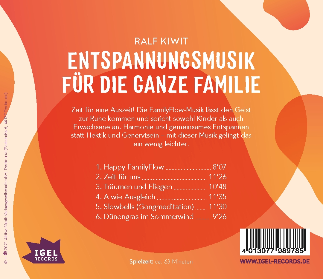 "FamilyFlow. Entspannungsmusik für die ganze Familie" ist das ideale Hörerlebnis für Familien, die nach einem hektischen Tag zu gemeinsamer Ruhe und Entspannung zurückfinden möchten. Diese sorgfältig zusammengestellte Sammlung von loungeartiger Musik schafft eine beruhigende Atmosphäre, die Erwachsenen und Kindern gleichermaßen zugutekommt. Die harmonischen Klänge fördern das Wohlbefinden und unterstützen Familien dabei, eine entspannte Zeit miteinander zu verbringen. Ob nach der Schule, dem Kindergarten oder der Arbeit – diese Musik bietet eine wohltuende Pause vom Alltagsstress und hilft, den Geist zur Ruhe kommen zu lassen und die Familienbindung zu stärken.