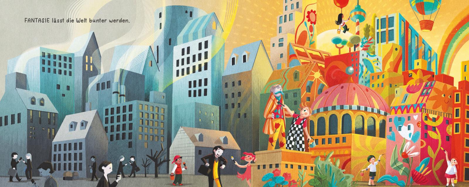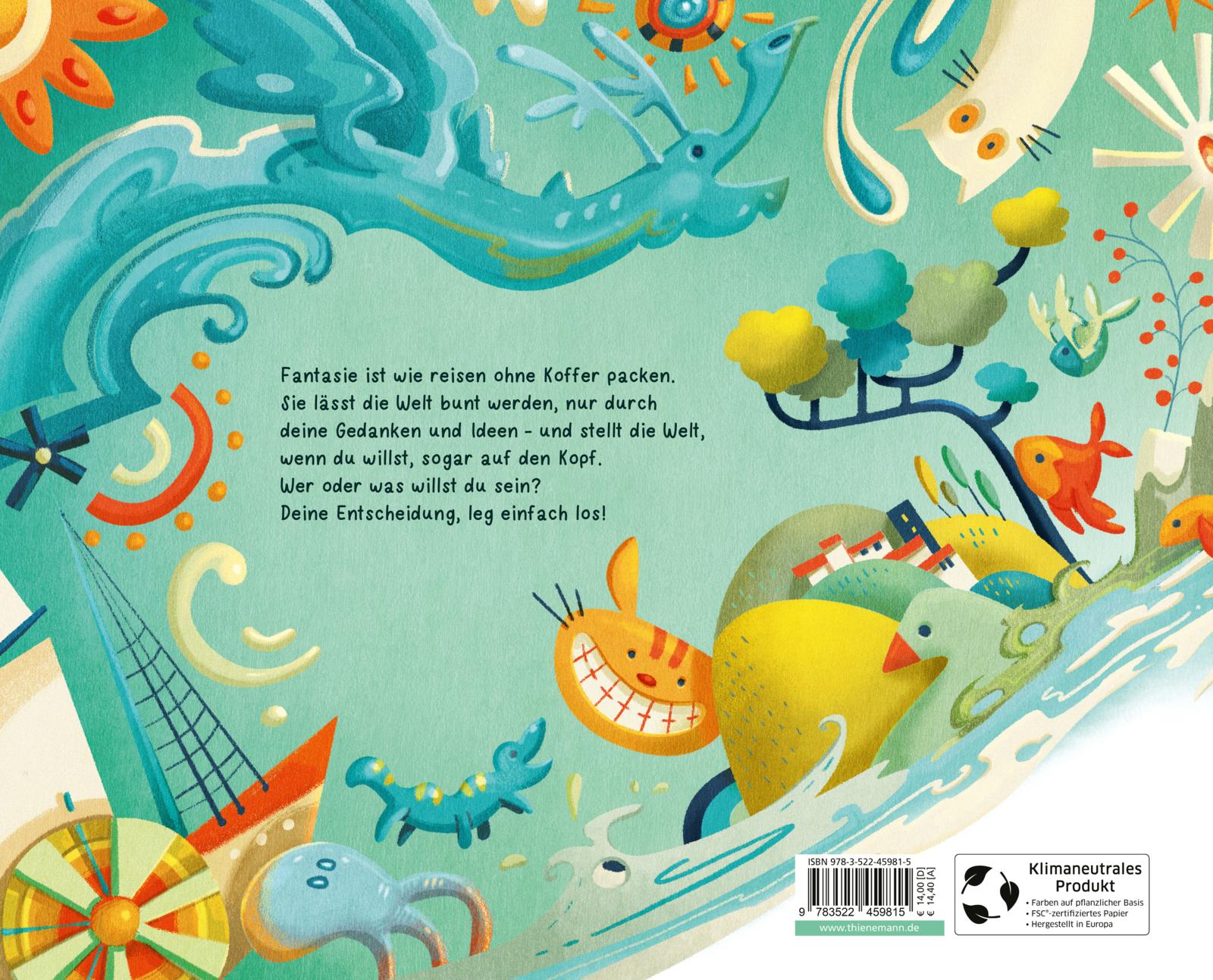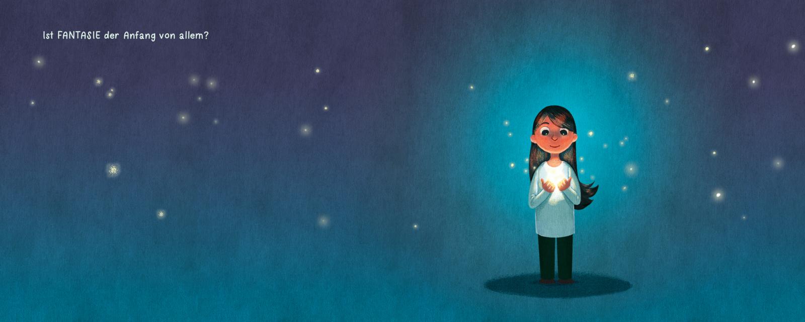 Egal ob schüchtern oder mutig, klein oder groß: Mit ihrer sprühenden Fantasie erschaffen Kinder sich ganz eigene, unglaubliche Welten. Fantasie macht stark, macht glücklich, verleiht Flügel! Sehen und erleben, was möglich ist und vor allem, was möglich sein könnte, das schafft dieses Bilderbuch von Bestsellerautorin Sabine Bohlmann. Mit ihren einzigartigen Bildern erweckt Simona Ceccarelli die bestärkenden, philosophischen Gedanken zum Leben. Aufbauend, liebevoll, berührend.