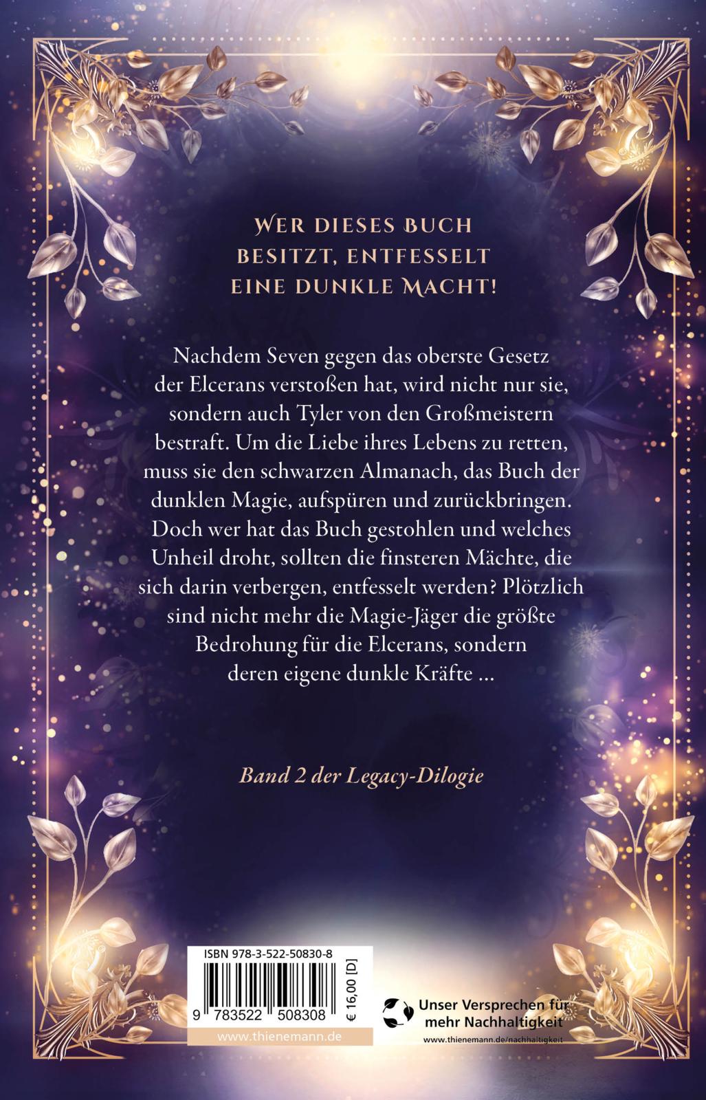 Nachdem Seven gegen das oberste Gesetz der Elcerans verstoßen hat, wird nicht nur sie, sondern auch Tyler von den Großmeistern bestraft. Um die Liebe ihres Lebens zu retten, muss sie den schwarzen Almanach, das Buch der dunklen Magie, aufspüren und zurückbringen. Doch wer hat das Buch gestohlen und welches Unheil droht, sollten die dunklen Mächte, die sich darin verbergen, entfesselt werden? Plötzlich sind nicht mehr die Magie-Jäger die größte Bedrohung für die Elcerans, sondern deren eigene dunkle Kräfte …