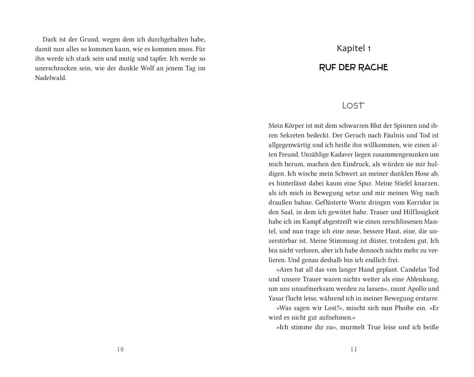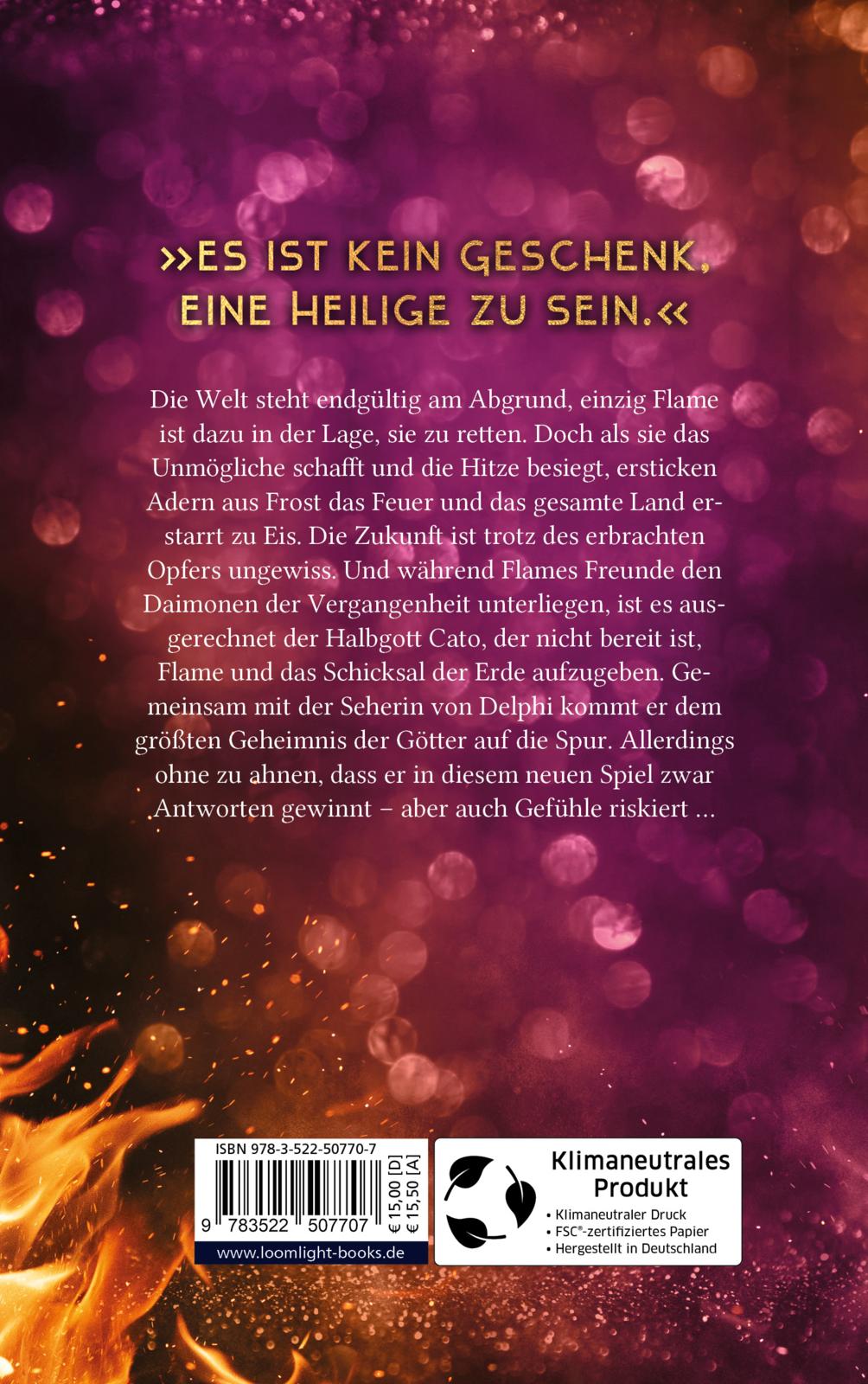Die Welt steht endgültig am Abgrund, einzig Flame ist dazu in der Lage, sie zu retten. Doch als sie das Unmögliche schafft und die Hitze besiegt, ersticken Adern aus Frost das Feuer und das gesamte Land erstarrt zu Eis. Die Zukunft ist trotz des erbrachten Opfers ungewiss. Und während Flames Freunde den Dämonen der Vergangenheit unterliegen, ist es ausgerechnet der Halbgott Cato, der nicht bereit ist, Flame und das Schicksal der Erde aufzugeben. Gemeinsam mit der Seherin von Delphi kommt er dem größten Geheimnis der Götter auf die Spur. Allerdings ohne zu ahnen, dass er in diesem neuen Spiel zwar Antworten gewinnt – aber auch Gefühle riskiert.