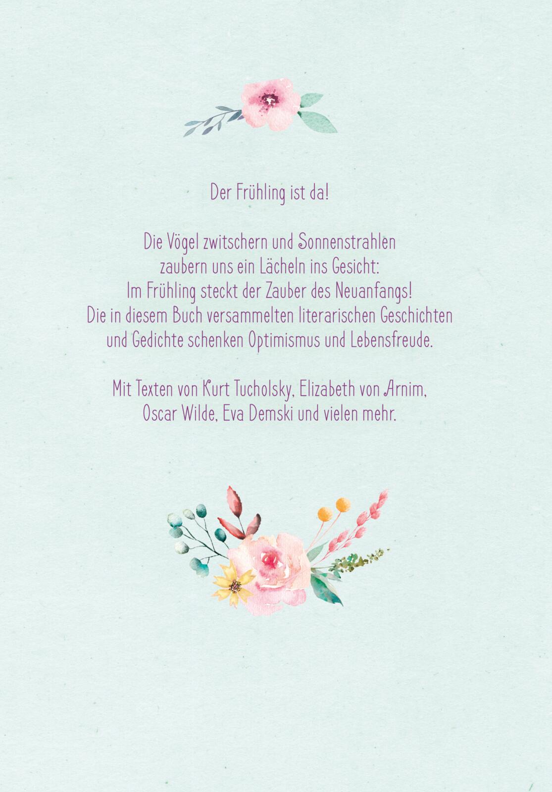 Die Vögel zwitschern, Knospen öffnen sich verheißungsvoll, Sonnenstrahlen zaubern ein Lächeln ins Gesicht ... Im Frühling steckt der Zauber des Neubeginns! Die in diesem Buch versammelten literarischen Geschichten für Erwachsene schenken Freude, Optimismus und neue Hoffnung.