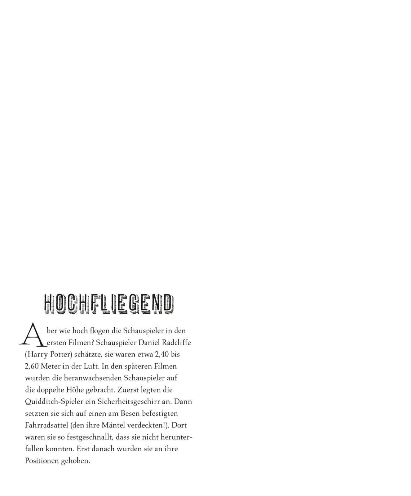 Quidditch ist der Lieblingssport der Zaubererwelt und wird von Harry-Potter-Fans in aller Welt geliebt. Mit besonderem Fokus auf Harry Potters Lieblingssport Quidditch bietet dieses Buch einen spannenden Blick hinter die Kulissen, wie die Flugszenen und der Goldene Schnatz für die Harry-Potter-Filme zum Leben erweckt wurden. Als exclusives Extra gibt es ein mitgeliefertes Do-it-yourself-3D-Puzzle aus Holz mit eurem eigenen Goldenen Schnatz!