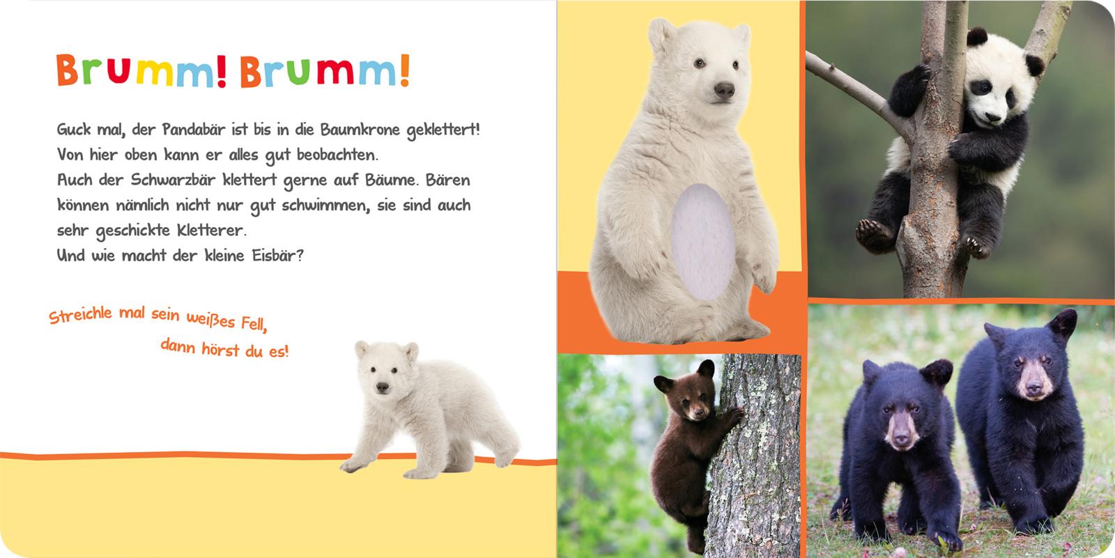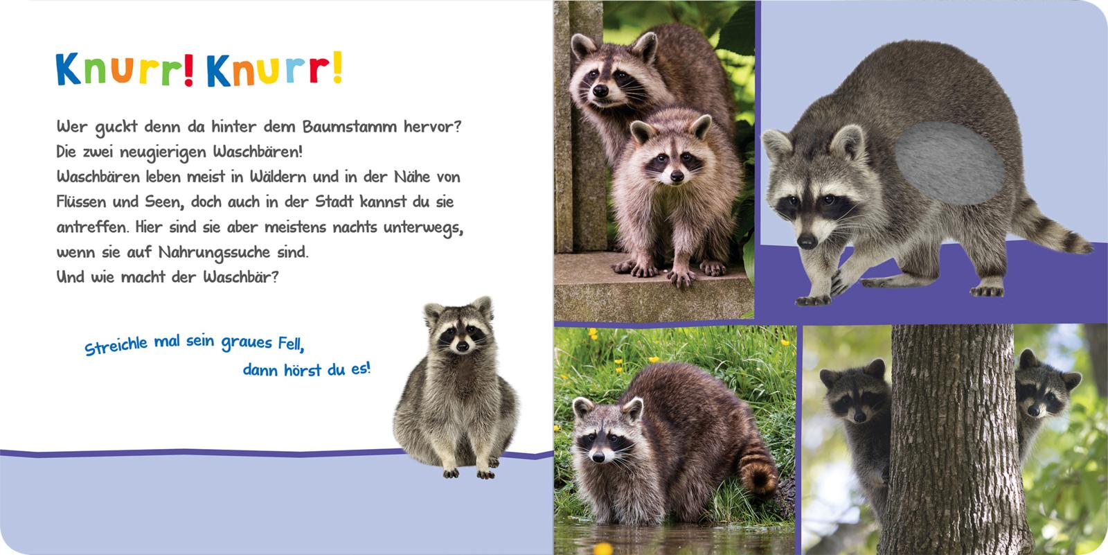 Die Katze macht miau, das Pony wiehert und der kleine Bär brummt glücklich. Doch wie klingen der Hund und der Waschbär? Hier kannst du es entdecken. Einfach über das kuschelweiche Fell der Tiere streicheln und schon werden die kuscheligen Tiere lebendig. Das Fühlbuch mit vielen hochwertigen Fotos und Soundmodulen begeistert schon die Kleinsten und macht das gemeinsame Vorlesen zum interaktiven Erlebnis für alle Sinne.