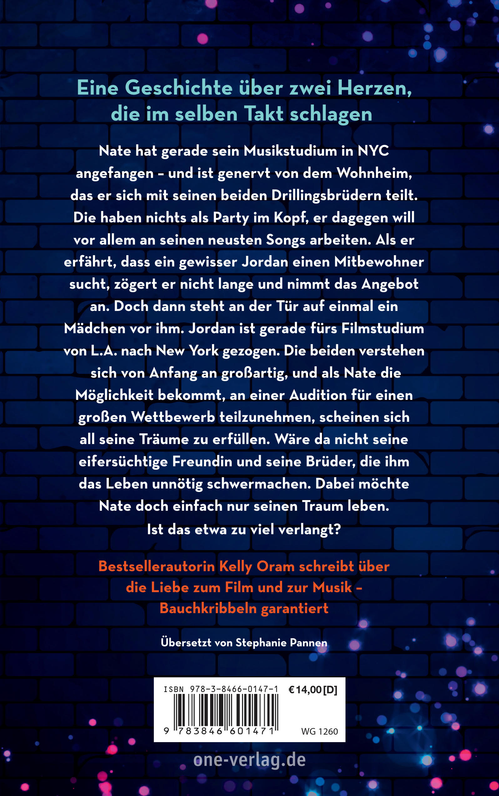 - Beschreibung Nate hat gerade sein Musikstudium in NYC angefangen - und ist genervt von dem Wohnheim, das er sich mit seinen beiden Drillingsbrüdern teilt. Die haben nichts als Party im Kopf, er dagegen will vor allem an seinen neusten Songs arbeiten. Als er erfährt, dass ein gewisser Jordan einen Mitbewohner sucht, zögert er nicht lange und nimmt das Angebot an. Doch dann steht an der Tür auf einmal ein Mädchen vor ihm. Jordan ist gerade fürs Filmstudium von L.A. nach New York gezogen. Die beiden verstehen sich von Anfang an großartig, und als Nate die Möglichkeit bekommt, an einer Audition für einen großen Wettbewerb teilzunehmen, scheinen sich all seine Träume zu erfüllen. Wäre da nicht seine eifersüchtige Freundin, der Jordan ein Dorn im Auge ist, und seine Brüder, die ihm das Leben unnötig schwermachen. Dabei möchte Nate doch einfach nur seinen Traum leben. Ist das etwa zu viel verlangt? Altersempfehlung: ab 14 Jahre
