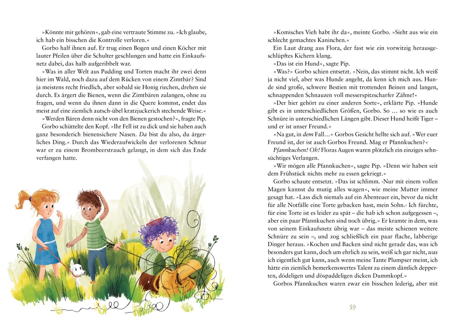 Als Pip und Flora im Sunny Bay Home, dem von Miss Watkyns geführten Heim für elternlose Kinder, in Schwierigkeiten geraten, laufen sie mit ihrem Hund Tiger davon: mitten hinein in eine andere Welt. Sie entdecken das Land der Schnerge, ein magischer Ort tief im Wald mit seinen Baumhäusern und kuriosen Bewohnern. Hier gibt es Zimtbären, tolle Feste und seltsame Rituale – aber auch Hexen und andere merkwürdige Wesen. Zum Glück haben die beiden Kinder einen Freund, den chaotischen und vergesslichen, aber dafür sehr liebenswerten Schnerg Gorbo. Mit ihm stolpern sie von einem grandiosen Abenteuer zum nächsten.