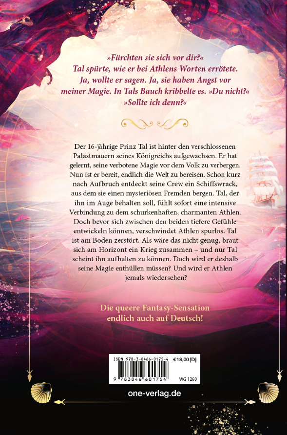 - Beschreibung Prinz Tal ist hinter den verschlossenen Palastmauern seines Königreichs aufgewachsen. Er hat gelernt, seine verbotene Magie vor dem Volk zu verbergen. Nun ist er bereit, endlich die Welt zu bereisen. Doch schon kurz nach Aufbruch entdeckt seine Crew ein Schiffswrack, aus dem sie einen mysteriösen Fremden bergen. Tal, der ihn im Auge behalten soll, fühlt sofort eine intensive Verbindung zu dem schurkenhaften, charmanten Athlen. Bevor sich zwischen den beiden tiefere Gefühle entwickeln können, verschwindet Athlen jedoch spurlos, und Tal wird von Piraten verschleppt, die damit drohen, seine magischen Kräfte zu enthüllen. Wird es ihm gelingen zu fliehen? Und wird er Athlen jemals wiedersehen?