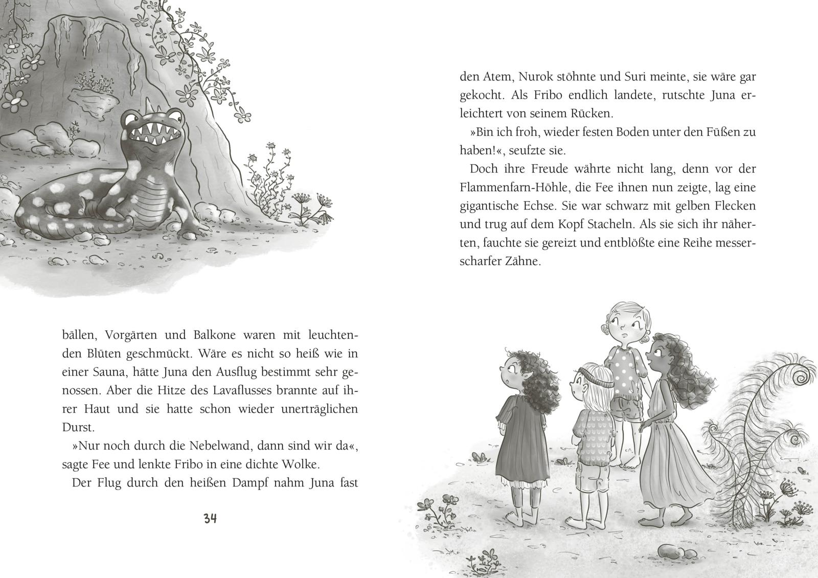 Mitten im Meer, im Reich der Wellenwandler, befindet sich eine kleine Vulkaninsel, die von einem besonderen Naturvolk bewohnt wird: den Feuerwandlern. Von Fee mit den flammend roten Haaren erfahren Juna und ihre Freunde vom verschwundenen Feuerfarn. Sie müssen unbedingt verhindern, dass die magische Pflanze in falsche Hände kommt und der mächtige Lavafluss in der Stadt der Feuerwandler über die Ufer tritt. Das Abenteuer führt sie in ein unterirdisches Reich voller Gefahren.