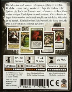 Die Monster sind los und müssen eingefangen werden. Doch bei dieser lustigen, verrückten Jagd übernehmen die Spieler die Rolle der Monster und müssen versuchen, ihren wahnsinnigen Verfolgern zu entkommen. Versuche deinen Jäger loszuwerden und dabei möglichst auf deine Mitspieler zu hetzen. Ein höllischer Schabernack für Jung und Alt. Das hinterlistigste Monster gewinnt!