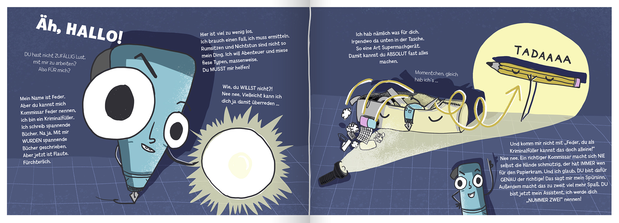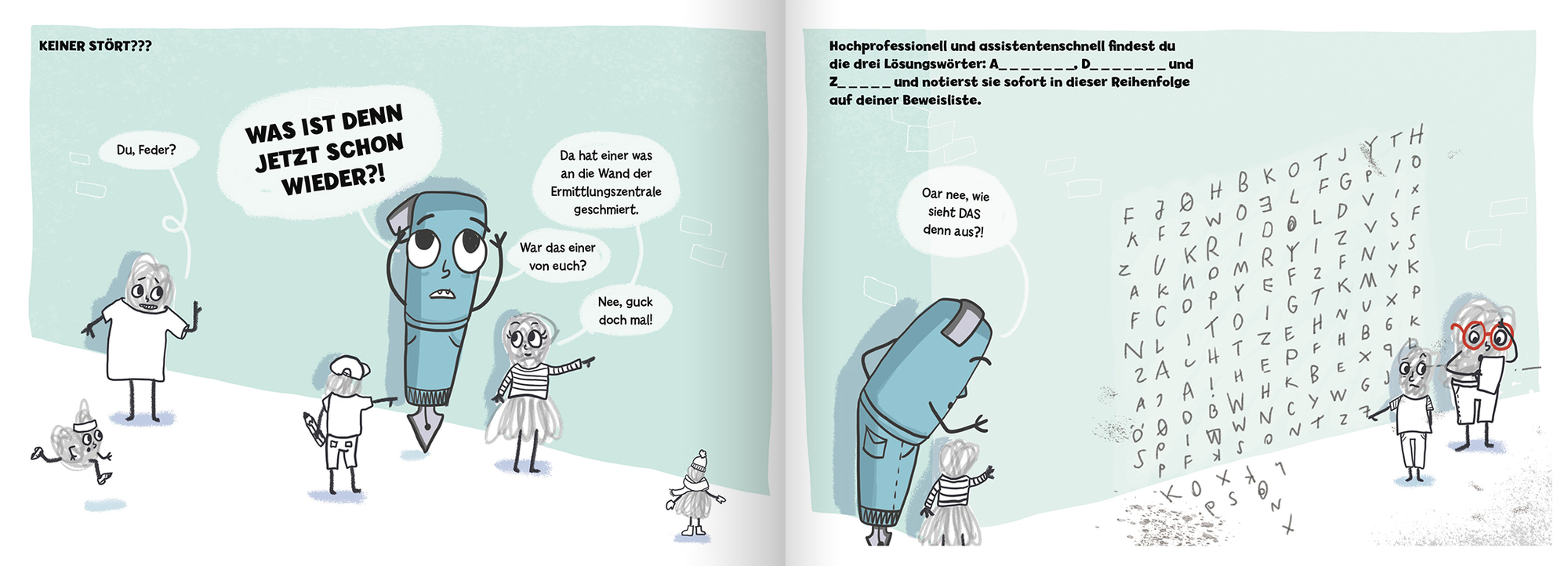Hier spricht Kommissar Feder, der Kriminalfüller, und ich suche DICH! Du liebst spannende Abenteuer, Rätsel und Kritzeln? Maximal genial! Bewaffne dich mit einem Stift und werde meine Nummer zwei. Denn ein übler Schurke treibt sein Unwesen. Er ist ein Meister im Fallenstellen und hinterlässt überall seine Spuren. Den schnappen wir uns, bevor noch etwas Schlimmes passiert – oh nein! Zu spät! Hier ist ein riesiger Tatort! Nummer zwei, mach dich bereit für ein wildes Krimi-Abenteuer!