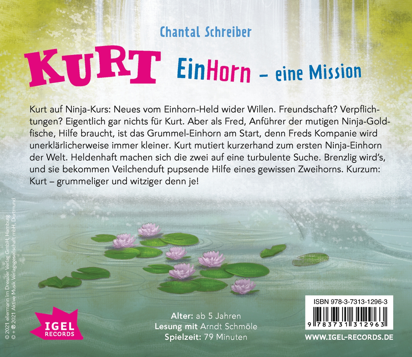 Von freundschaftlichen Verpflichtungen hält Grummeleinhorn Kurt eigentlich nicht viel. Aber als Fred, der Anführer der Ninjagoldfische, dringend seine Hilfe braucht, ist er zur Stelle. Freds Kompanie wird unerklärlicherweise immer kleiner. Kurzerhand wird Kurt zum ersten Ninjaeinhorn der Welt. Die beiden machen sich auf eine turbulente und amüsante Suche nach den verschwundenen Ninjas, und als es brenzlig wird, bekommen sie Veilchenduft pupsende Hilfe von einem besonders charmanten Zweihorn.