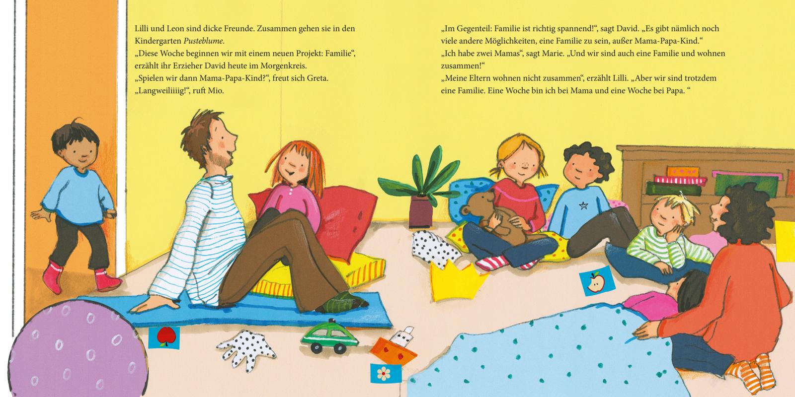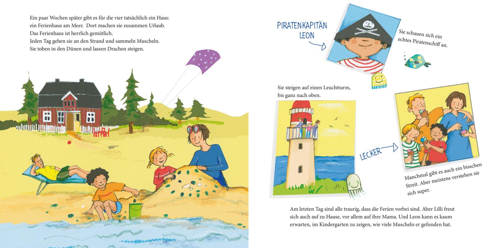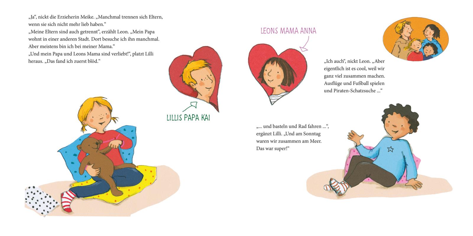 Lillis Papa und Leons Mama sind ineinander verliebt. Zuerst fanden die Kinder das nicht so toll. Aber zu viert machen Ausflüge und Pizzaessen meistens doch mehr Spaß. Und nach einem gemeinsamen Urlaub steht fest: Wir ziehen zusammen.