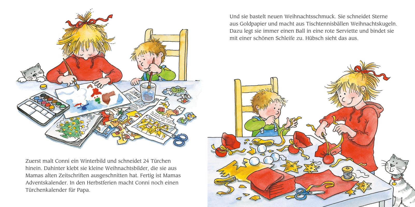 Conni ist ganz aufgeregt! Im Supermarkt gibt es schon Lebkuchen, aber es dauert noch eine ganze Weile, bis endlich Weihnachten ist. So lange vertreibt sich Conni die Zeit mit dem Basteln von Weihnachtsschmuck. Und auf dem Weihnachtsmarkt trifft sie sogar den Weihnachtsmann. Ob der wohl echt ist?