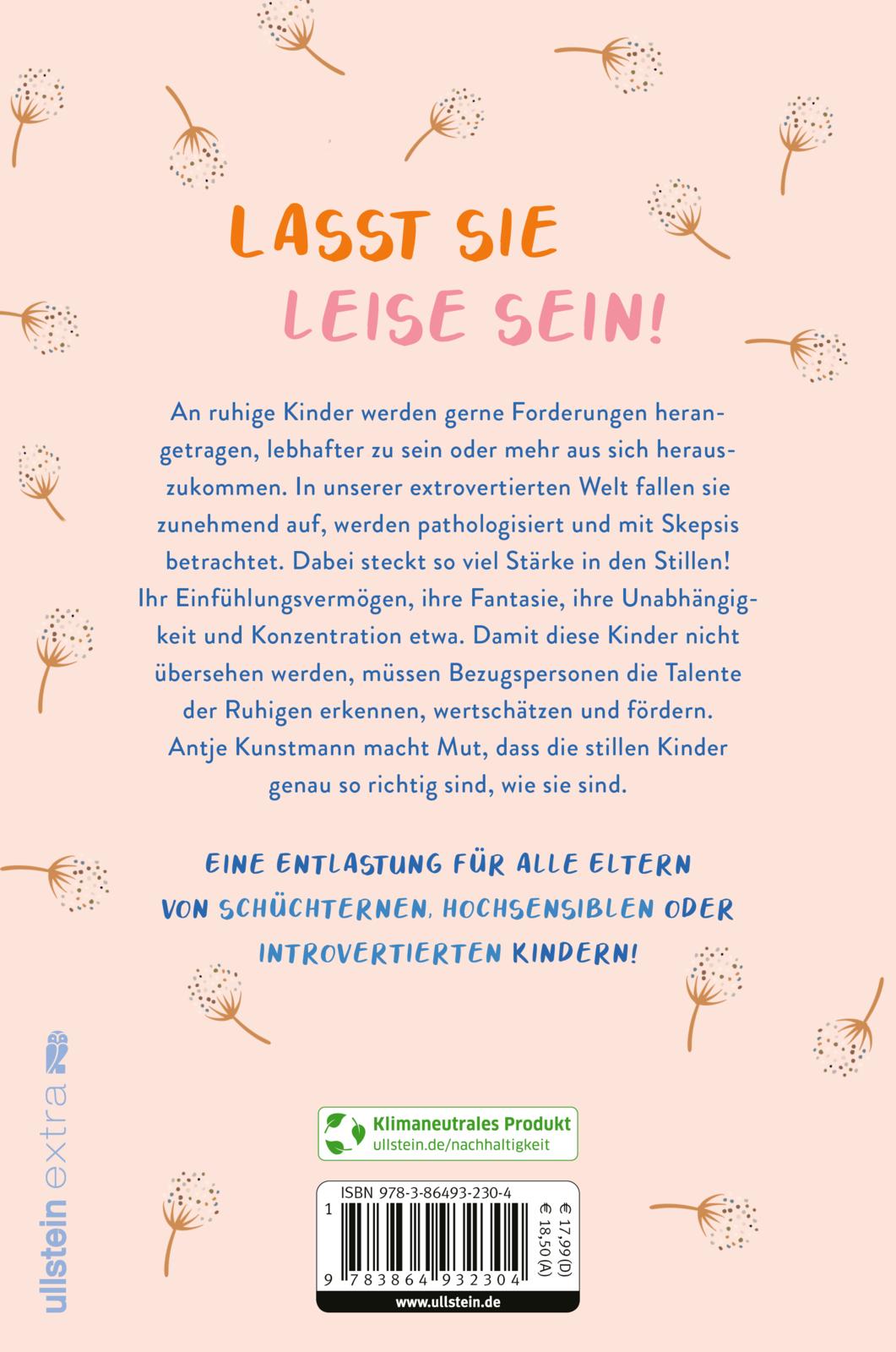 An schüchterne und introvertierte Kinder werden gerne Forderungen herangetragen, lebhafter zu sein, oder mehr aus sich herauszukommen. In unserer extrovertierten Welt fallen sie zunehmend auf, werden pathologisiert und mit Skepsis betrachtet. Dabei steckt so viel Stärke in den Stillen! Ihr Einfühlungsvermögen, ihre Fantasie, ihre Unabhängigkeit und Konzentration etwa. Damit diese Kinder nicht übersehen werden, müssen Bezugspersonen die Talente der Ruhigen erkennen, wertschätzen und fördern. Antje Kunstmann macht den Eltern anhand persönlicher Geschichten aus ihrem eigenen Leben mit vier introvertierten Kindern Mut, dass ihre stillen Kinder genau so richtig sind, wie sie sind.