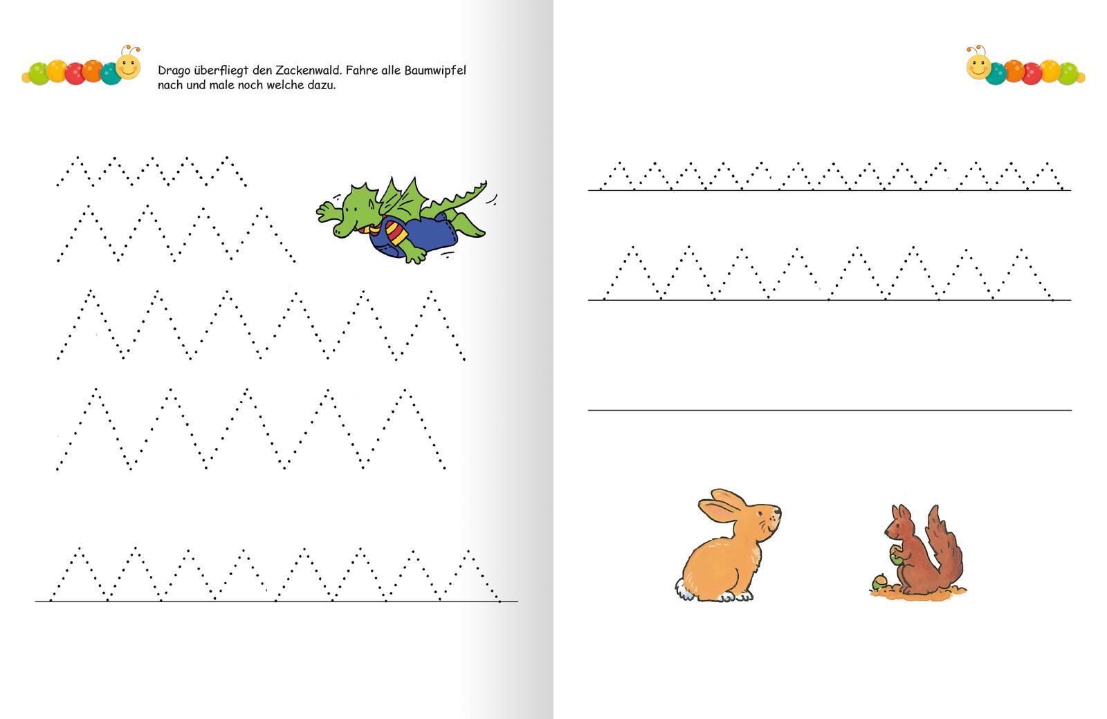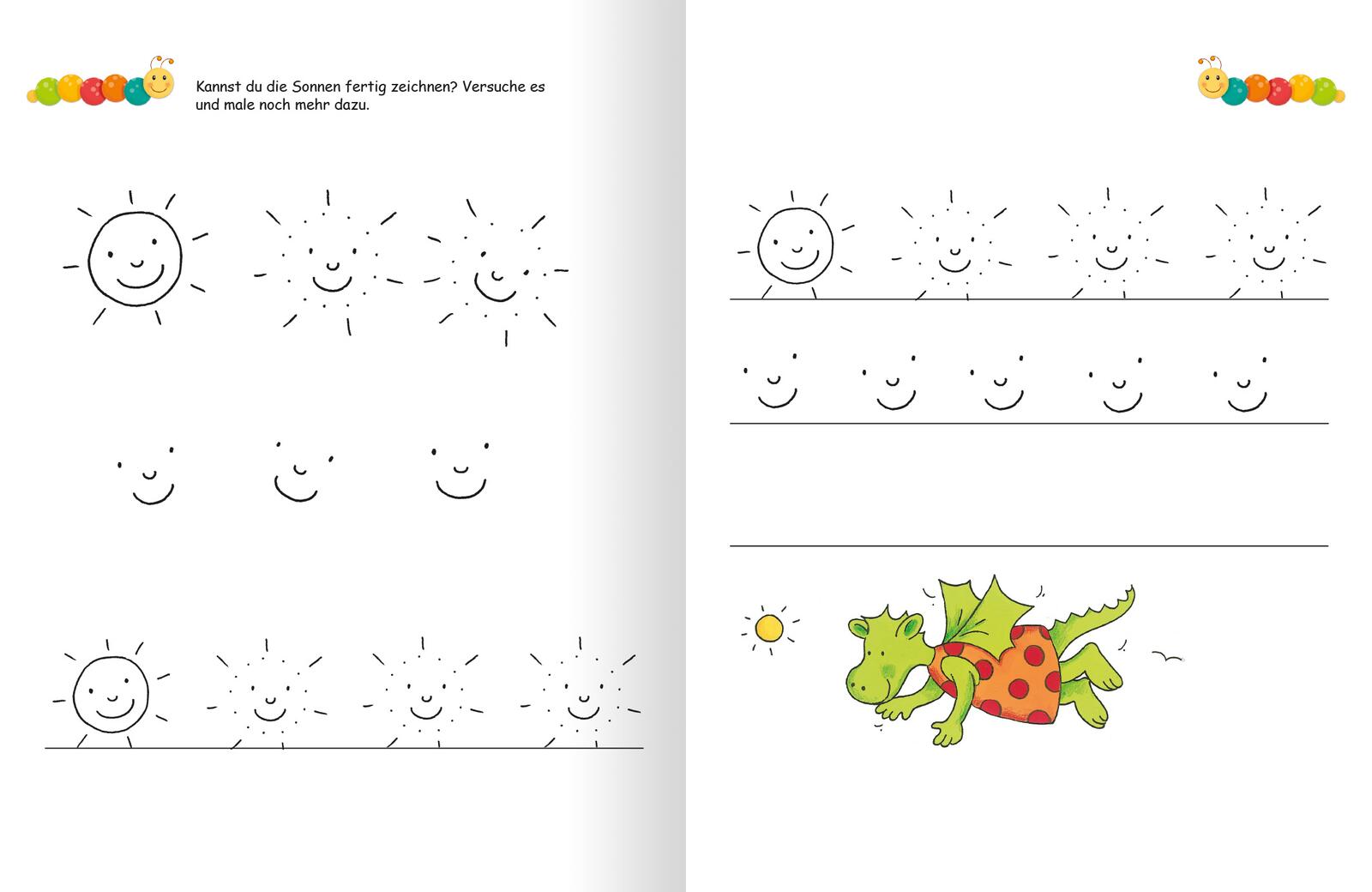 - Bunte, altersgerecht illustrierte Aufgaben: Die Übungen trainieren spielerisch das Schreiben und die Feinmotorik