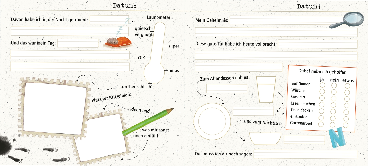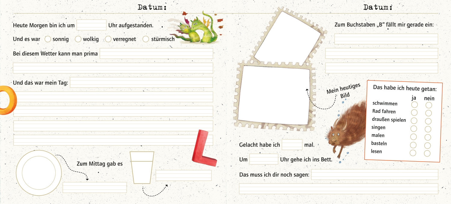 - Tagebuch für Kinder ab 6 Jahren mit vielen Ausfüllhilfen.