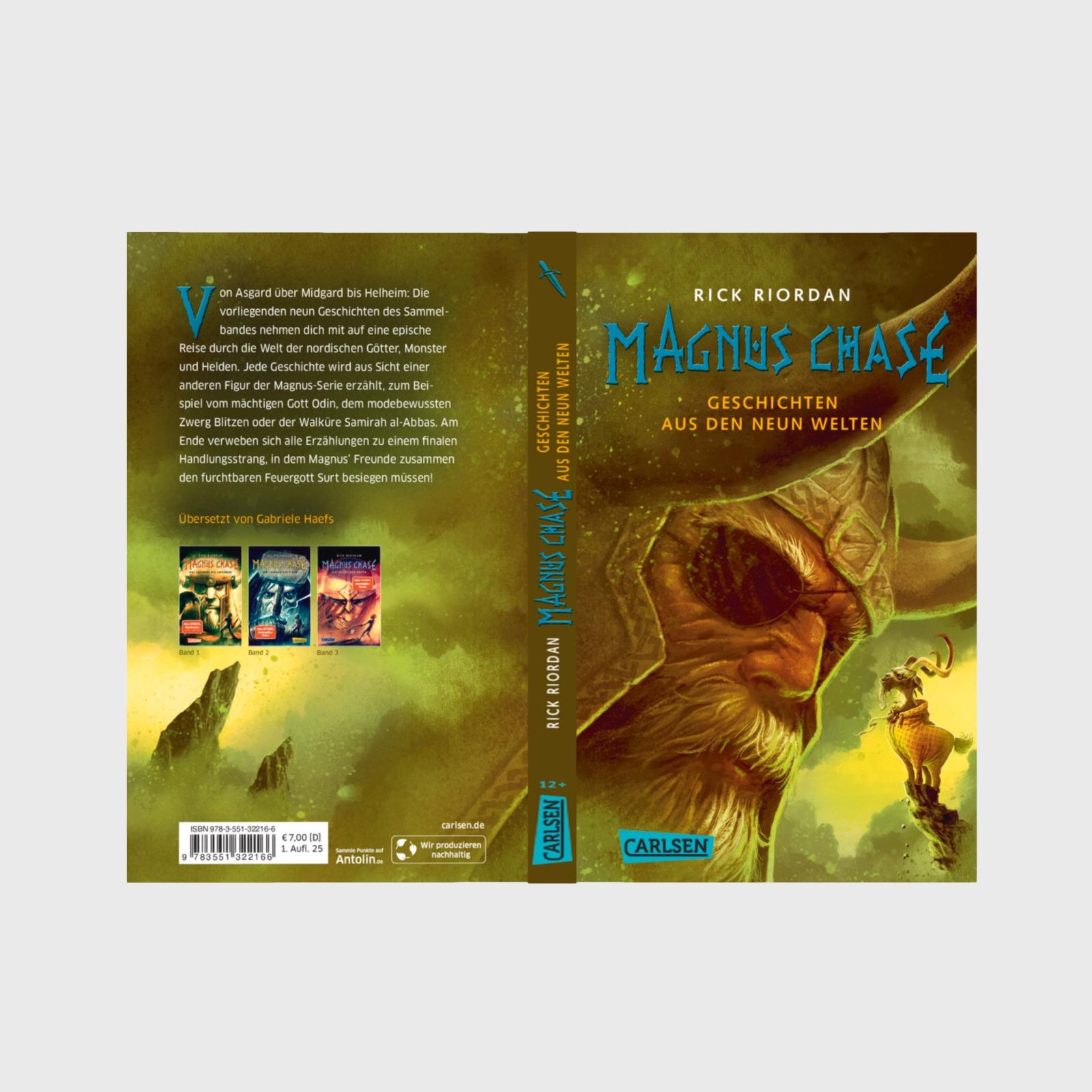 - Beschreibung Action, Chaos und Wikingerhumor: Ein vertiefender Blick in die Welt von Magnus Chase Von Asgard über Midgard bis Helheim: Die vorliegenden 9 Geschichten des Sammelbandes nehmen die Leser*innen mit auf eine epische Reise durch die Welt der nordischen Götter, Monster und Helden. Jede Geschichte wird aus Sicht einer anderen Figur erzählt, etwa dem mächtigen Gott Odin, dem modebewussten Zwerg Blitzen oder der Walküre Samirah al-Abbas. Am Ende verweben sich alle Erzählungen zu einem finalen Handlungsstrang, in dem Magnus' Freunde zusammen den Feuergott Surt besiegen müssen. Der Sonderband ist eine willkommene Ergänzung zur Magnus-Chase-Trilogie, die einen tieferen Einblick in die nordische Mythenwelt gewährt. Aus dem Universum von "Percy Jackson" und "Die Kane-Chroniken": Magnus Chase Der 16-jährige Magnus Chase lebt seit dem mysteriösen Tod seiner Mutter auf der Straße. Mit Diebstählen hält er sich über Wasser – bis er eines Tages von seinem besonderen Erbe erfährt: Magnus ist der Sohn des nordischen Gottes Frey und soll die Welt vor dem Untergang retten. In der Fantasy-Trilogie überführt Rick Riordan alte Sagen und Legenden in moderne Geschichten und schafft es, Leser*innen überall auf der Welt für die nordische Mythologie zu begeistern. ***Feuerriesen, Walküren und nordische Götter - packende Fantasy für Leser*innen ab 12 Jahren und für alle Fans der nordischen Mythologie***