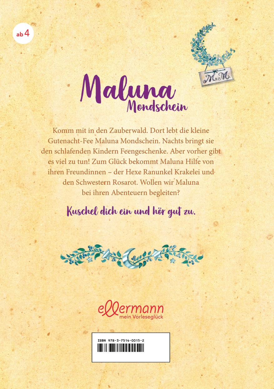 Cooler als Lillifee, spannender als Snöfrid, frecher als Erdbeerinchen! Weit weg im fernen Zauberwald lebt die kleine Gutenacht-Fee Maluna Mondschein. Sie ist eine ganz besondere Fee. Denn nur Maluna bringt den Kindern nachts echte Feengeschenke. Dazu braucht sie die Hilfe ihrer Freundinnen – z. B. der Hexe Ranunkel Krakelei und natürlich den Schwestern Rosarot. Möchtest du sie dabei begleiten? Dann kuschel dich schnell in dein allerweichstes Kissen und lass dir die Geschichte vorlesen. Viel Spaß mit Maluna Mondschein und feentraumschöne Nacht!