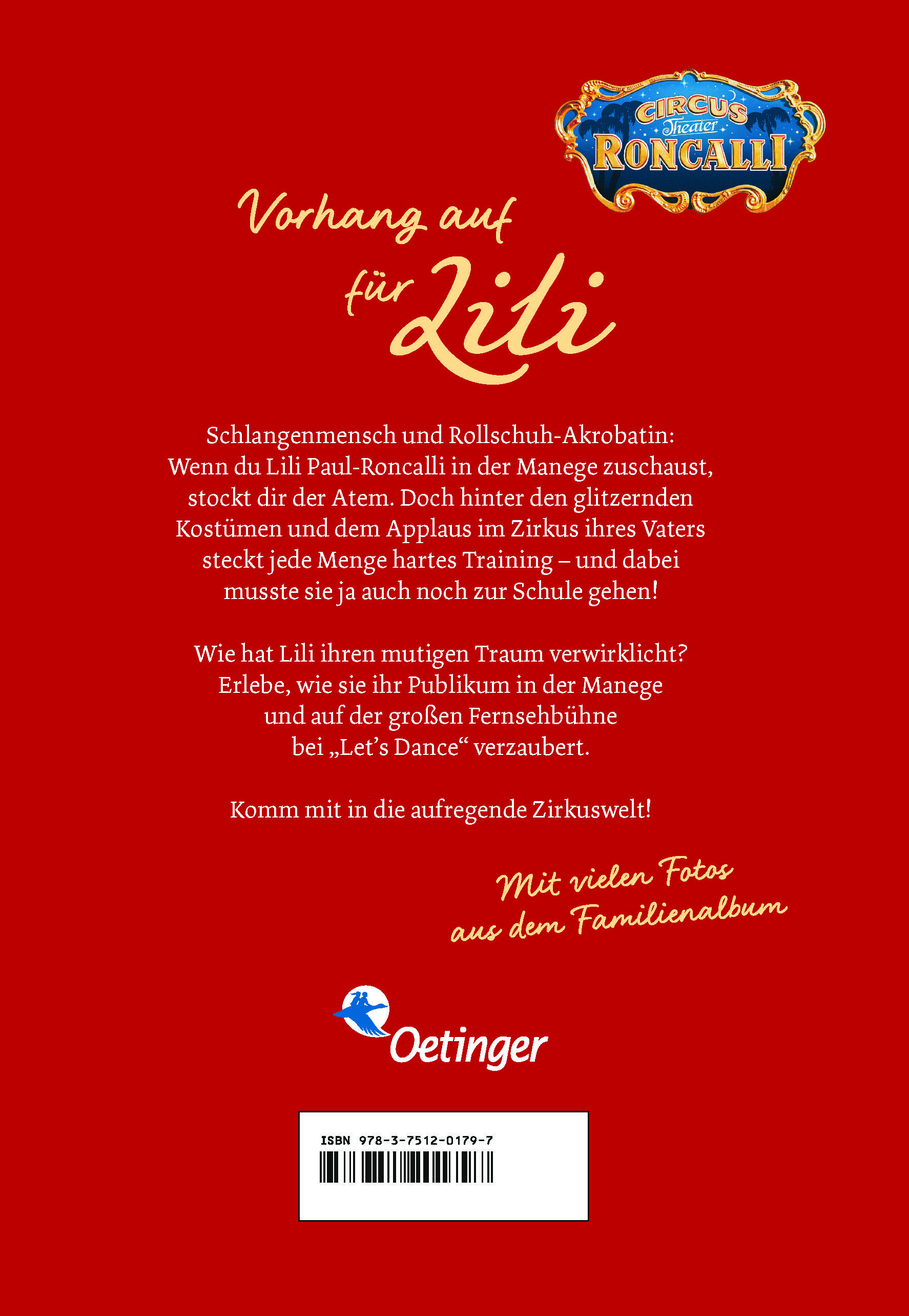Spätestens seit ihrem Sieg bei Let’s Dance 2020 kennt fast jeder die Artistin Lili Paul-Roncalli. In ihrer beeindruckenden Autobiografie erzählt die 23-Jährige, wie sie zum Star in der Manege geworden ist. Von der Kindheit im Circus Roncalli über erste Auftritte als Rollschuhakrobatin bis zu ihrem Erfolg als „Schlangenmensch“ im Zirkus ihres Vaters und auf anderen Bühnen in Europa. Ein aufregendes Buch, extra für Kinder geschrieben, mit vielen privaten Fotos und Hintergrundinfos.