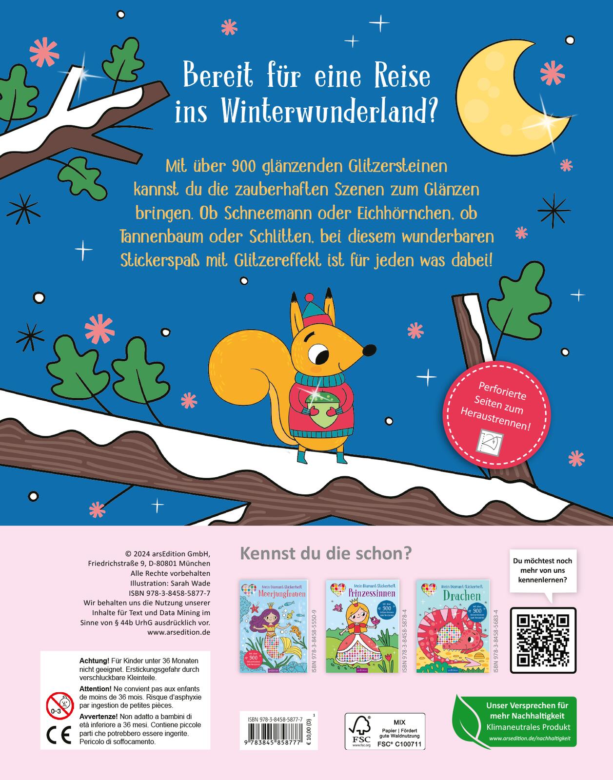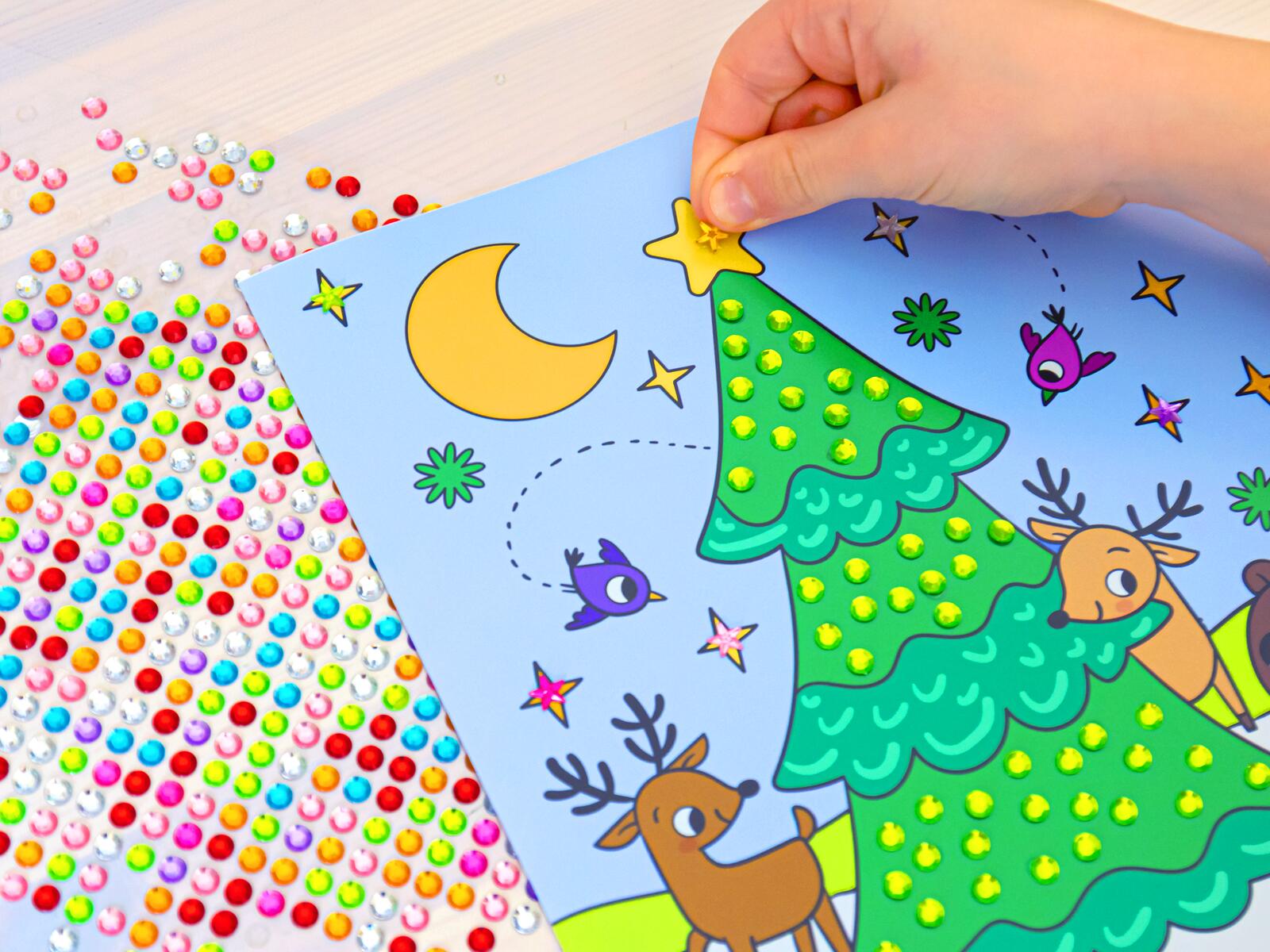 Mit über 900 glänzenden Glitzersteinen kannst du die winterlichen Szenen zum Glänzen bringen. Ob Fuchs oder Reh, ob Schneemann oder Winterwald, bei diesem wunderbaren Stickerspaß mit Glitzereffekt ist für jeden was dabei!
